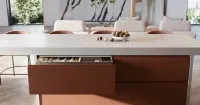 • Столешница из кварцелана ЭТНА в оттенке White Ice с элегантной стойкой острова из акрилового камня Грантекс 100 мм в декоре Milky Way. Идеальное сочетание холодной благородной белизны и глубины мерцающего космического узора. Чистота и сдержанность White Ice гармонично дополняется таинственным сиянием Milky Way, создавая стильный и современный ансамбль для кухни или барной зоны.