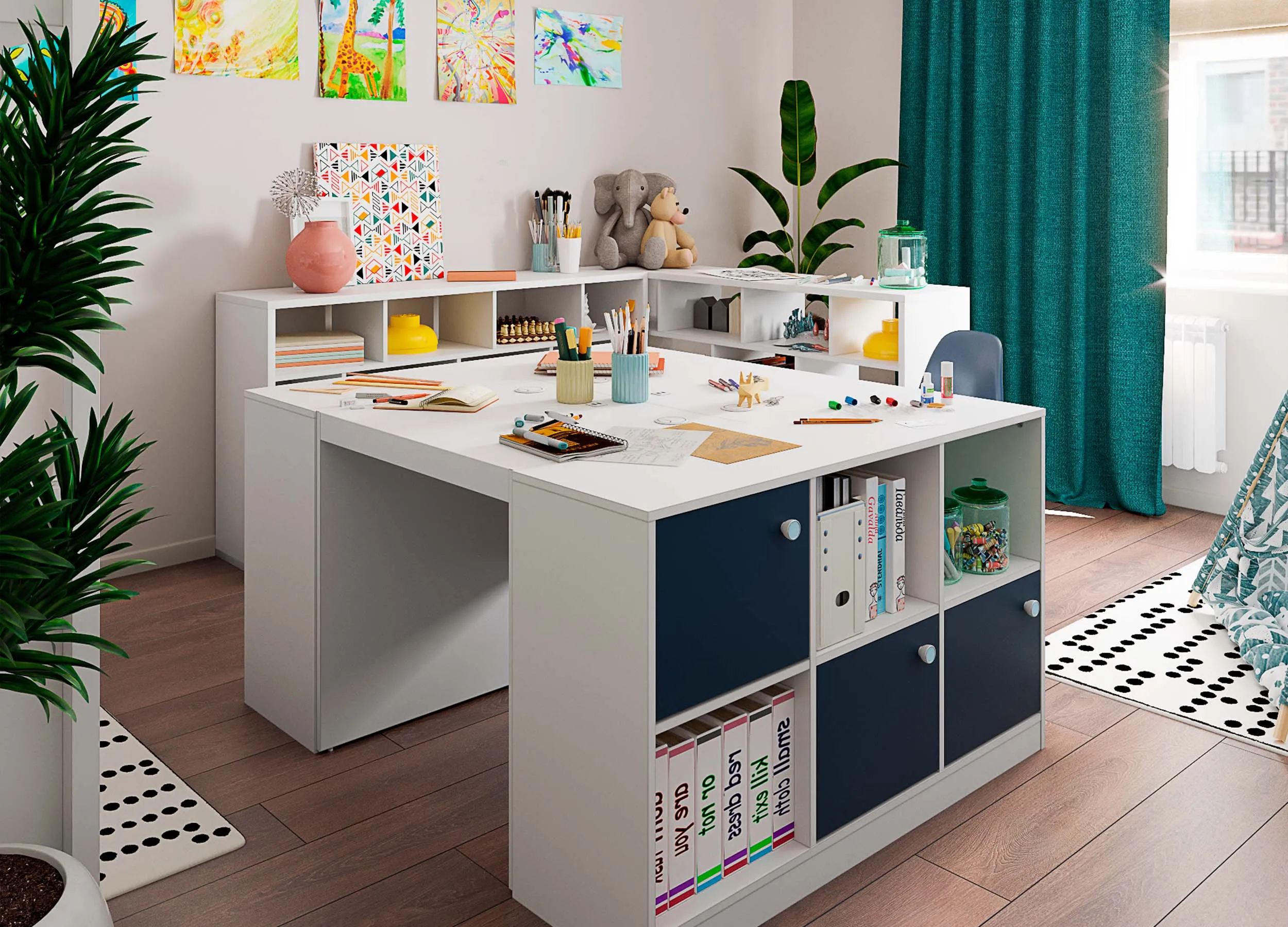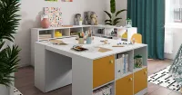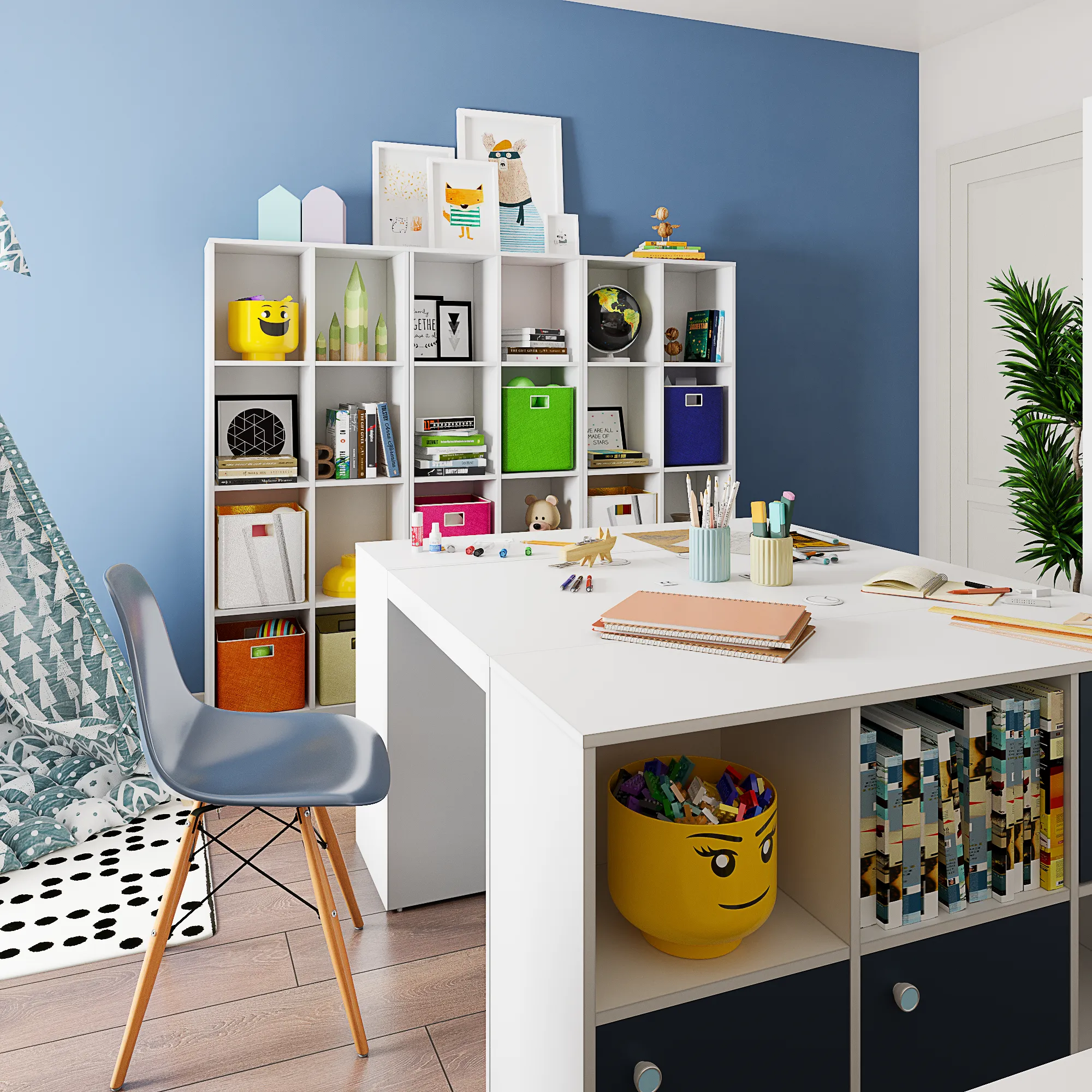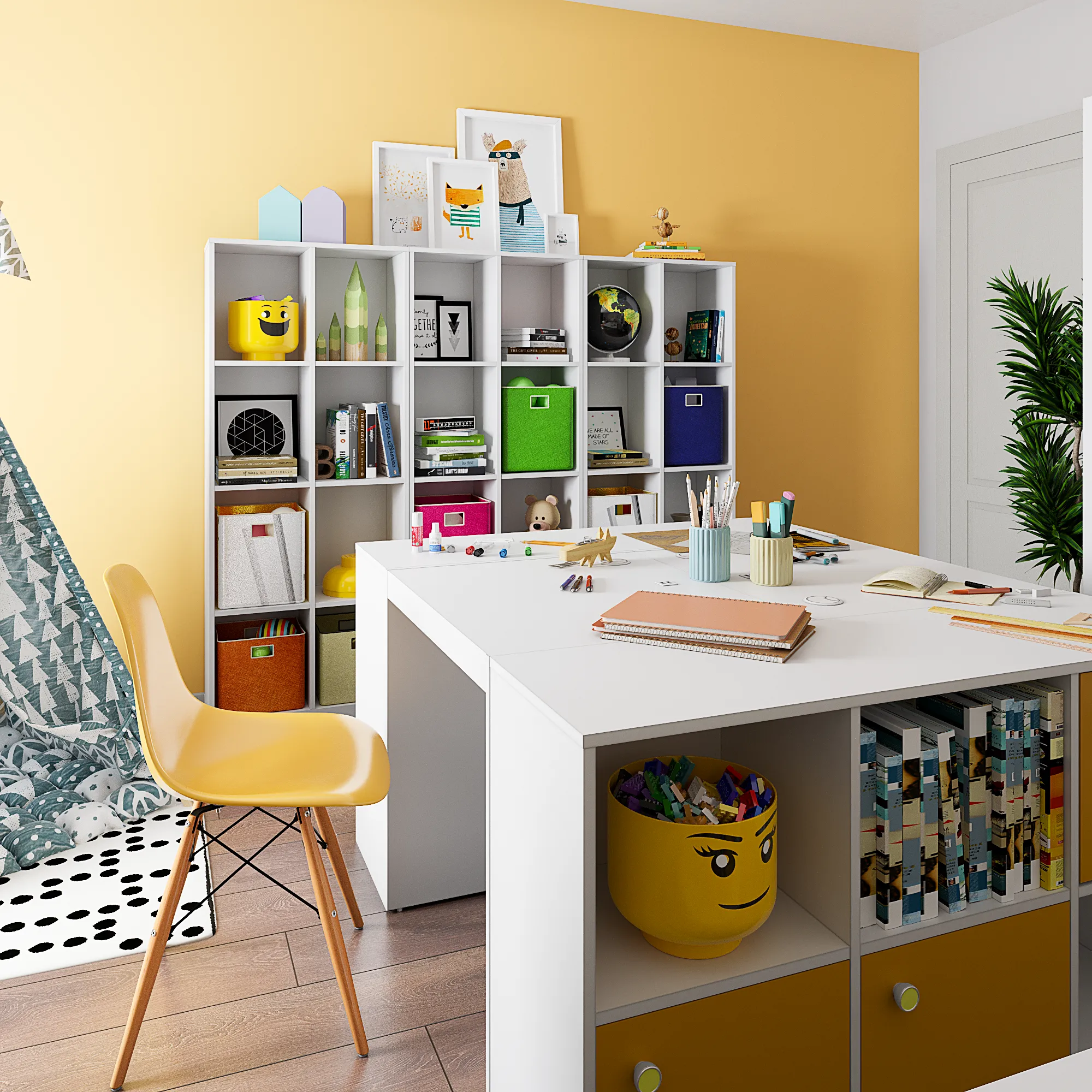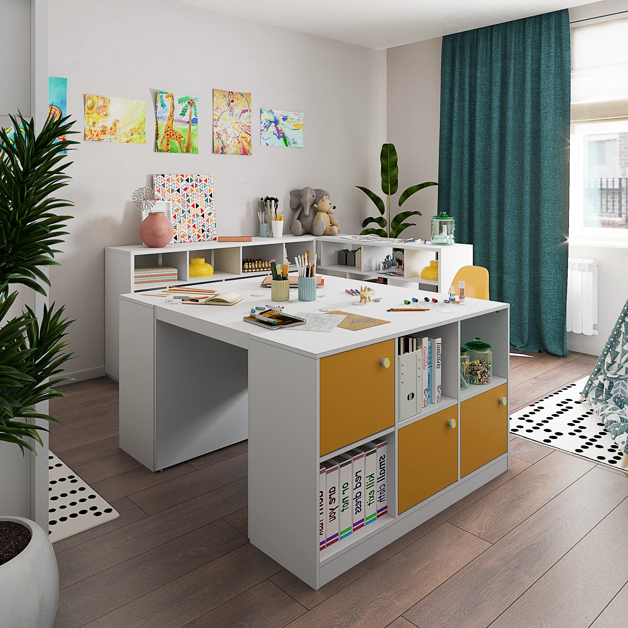 • по бокам от столов с каждой из сторон – небольшие стеллажи Baby BBD23 с открытыми и закрытыми секциями, как раз под разные творческие задачи.