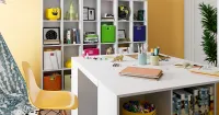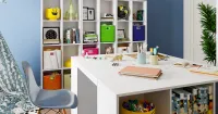 • по середине комнаты довольно комфортно разместили 2 стола Charming CTH01, состыковав их друг с другом. В результате образовалось большое место для проведения творческих экспериментов.
