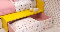 • кровать с выдвижными ящиками и небольшим стеллажом;