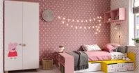 Детская для девочки дошкольного и младшего школьного возраста в розово-белом цвете дополнена изображениями веселых мультипликационных персонажей. Изготовленная на заказ, она подарит комфорт, оставит приятные воспоминания о беззаботном детстве. Красивые предметы интерьера способствуют развитию фантазии у малышей.