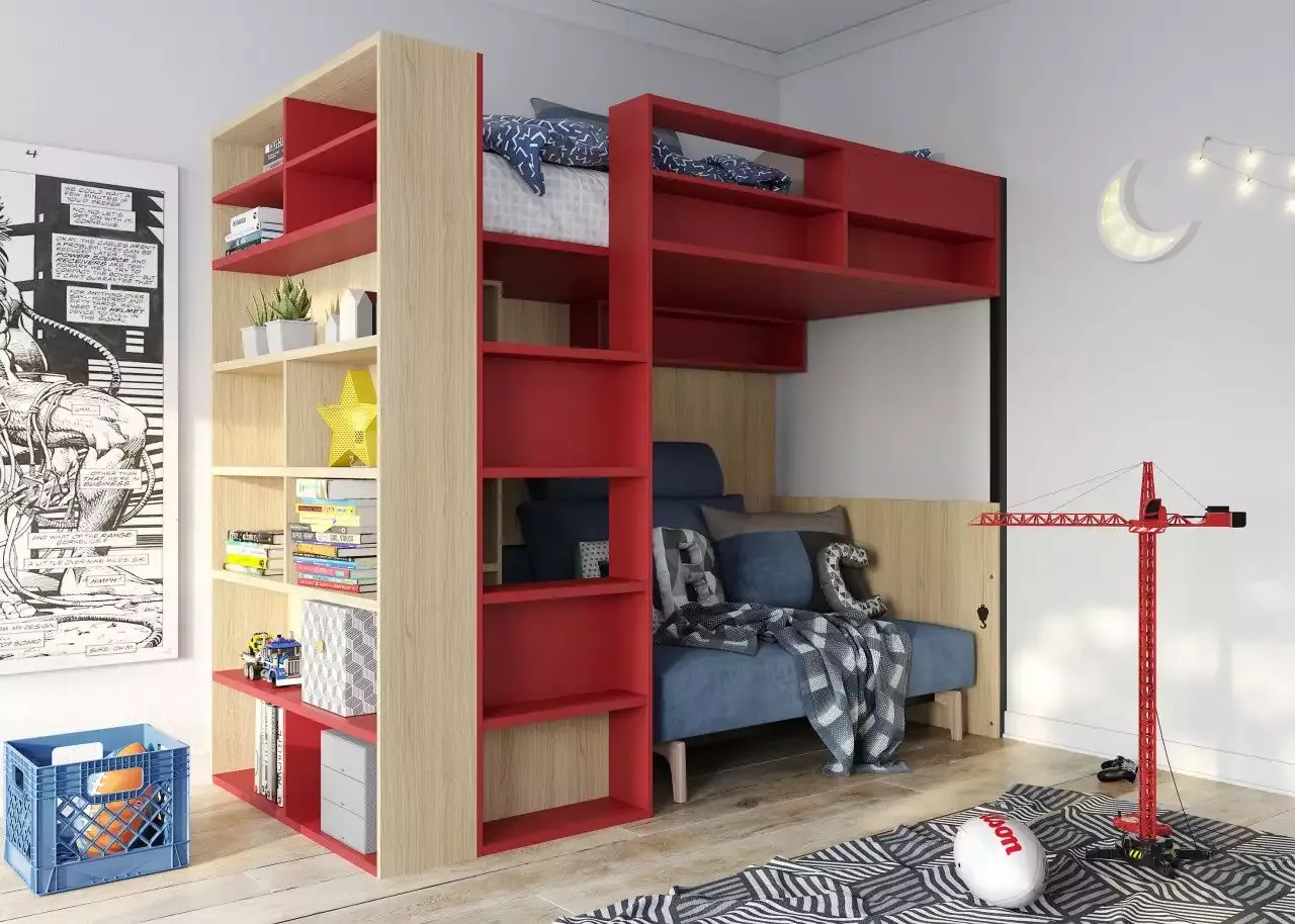 внизу вы можете поставить кушетку, на которой ребенок будет читать книги, смотреть телевизор, принимать гостей,