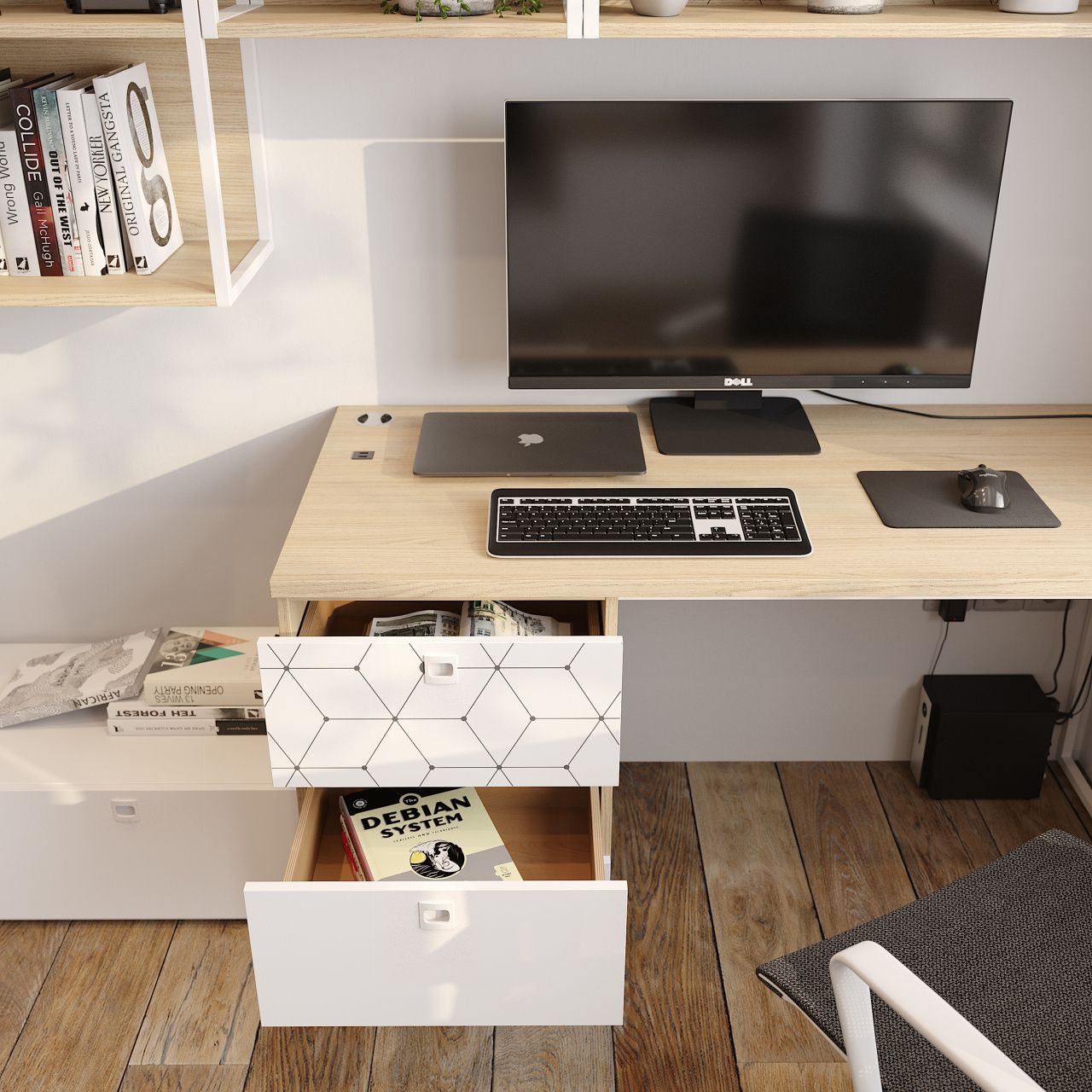 - удобный письменный стол с выдвижными ящиками и сопроводителем проводов;