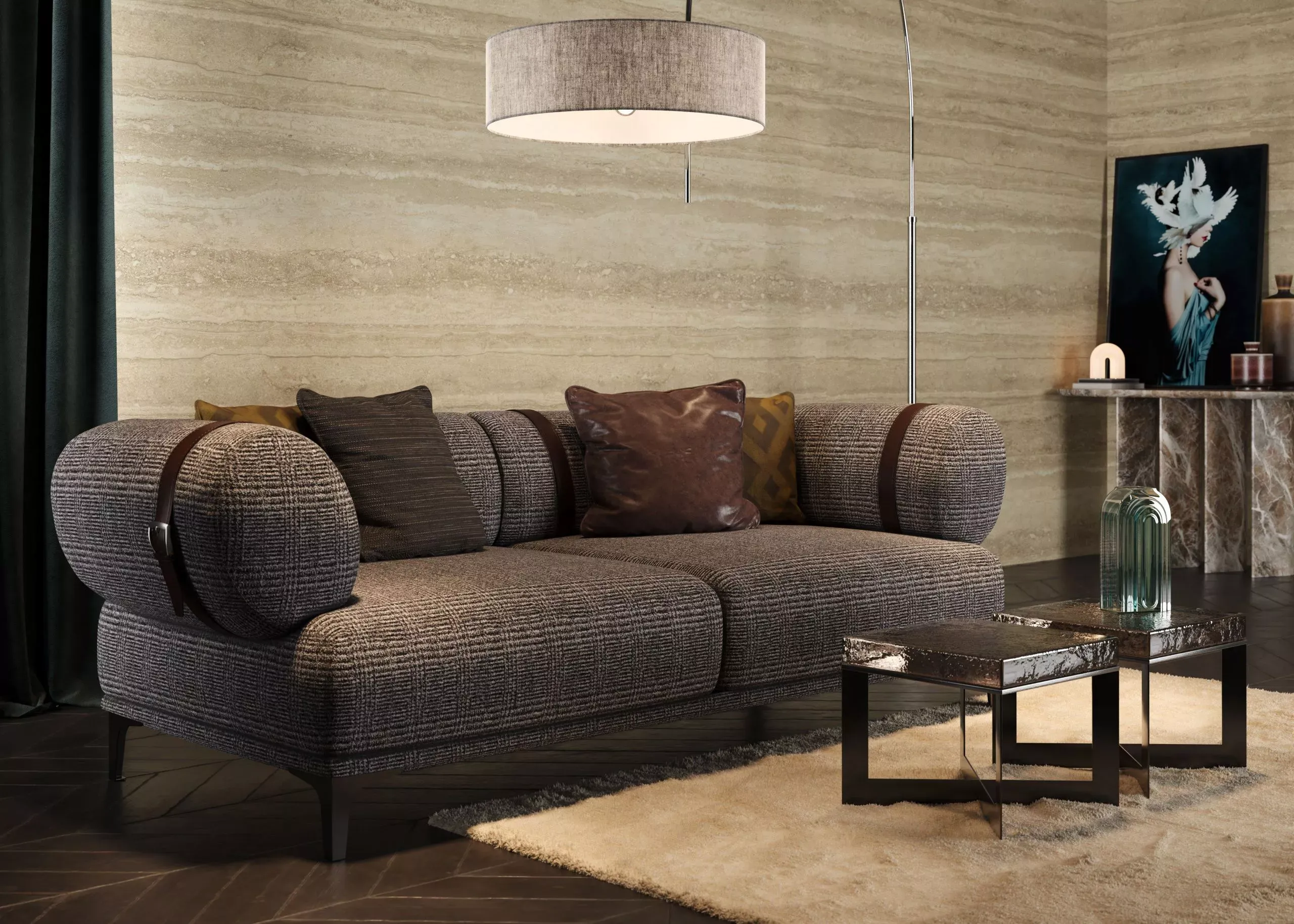 Диван Franco — это искусное сочетание брутальности и комфорта. Он прекрасно дополнит гостиную в английском стиле, лофт или так называемый «мужской» интерьер. Уверенные линии, крупные формы и интегрированные аксессуары в виде ремней создают оригинальность, благодаря которой эта запоминающаяся модель выделяется среди другой мебели.