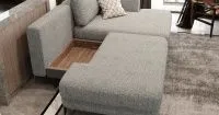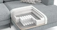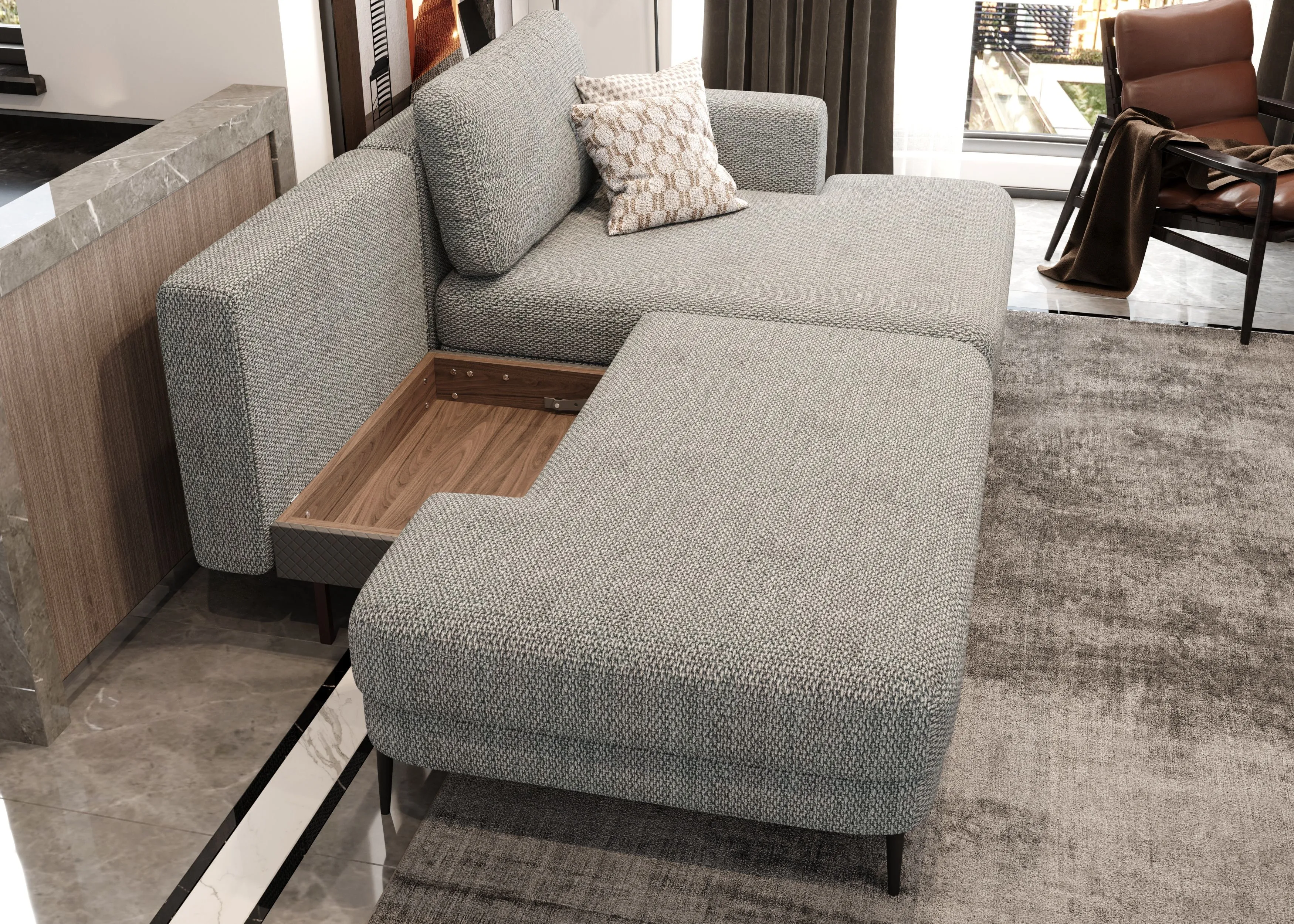 Механизм трансформации PantoMax обеспечивает легкое и быстрое превращение дивана в полноценное спальное место, делая его отличным выбором как для ежедневного сна, так и для приема гостей. Дополнительным преимуществом являются встроенные ящики для хранения в двух модулях — практичное решение для организации пространства.