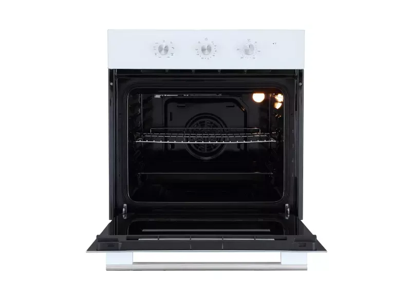 В комплекте идут универсальный противень и решетка-гриль. Дверца оснащена двойным стеклом для безопасности и легкосъемным большим внутренним стеклом Full Glass для удобства очистки. Духовка также оснащена защитным отключением, охлаждающим вентилятором и таймером на 2 часа. Габариты шкафа составляют 595х575х595 мм.