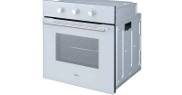 Электрический духовой шкаф встраиваемый полноразмерный, шириной 60 см, предлагает 8 режимов приготовления. Объем духовки составляет 65 литров, что делает его идеальным для большой семьи. Управление осуществляется с помощью поворотных переключателей, а панель управления выполнена из белого стекла.