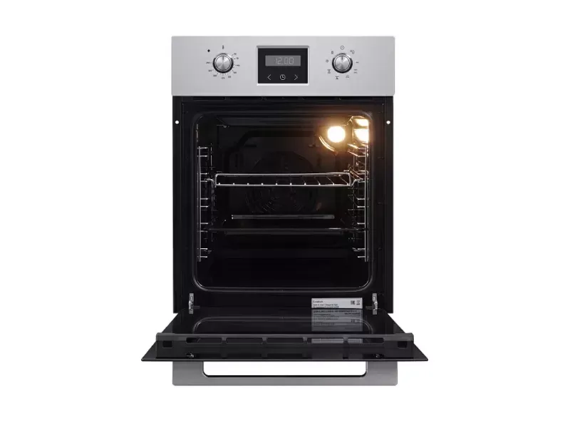 В комплекте идут универсальный противень и решетка-гриль. Дверца имеет тройное стекло, легкосъемное большое внутреннее стекло Full Glass. Предусмотрено защитное отключение при перегреве, а также предусмотрен охлаждающий вентилятор. Электронный таймер рассчитан на 24 часа. Габариты духового шкафа: 450х565х595 мм.