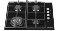 В каждой ручке предусмотрен электроподжиг. Варочная панель также оснащена функцией газ-контроля для обеспечения безопасности. Особенностью панели является тройное кольцо пламени. В комплекте идут переходники для разных типов газа.