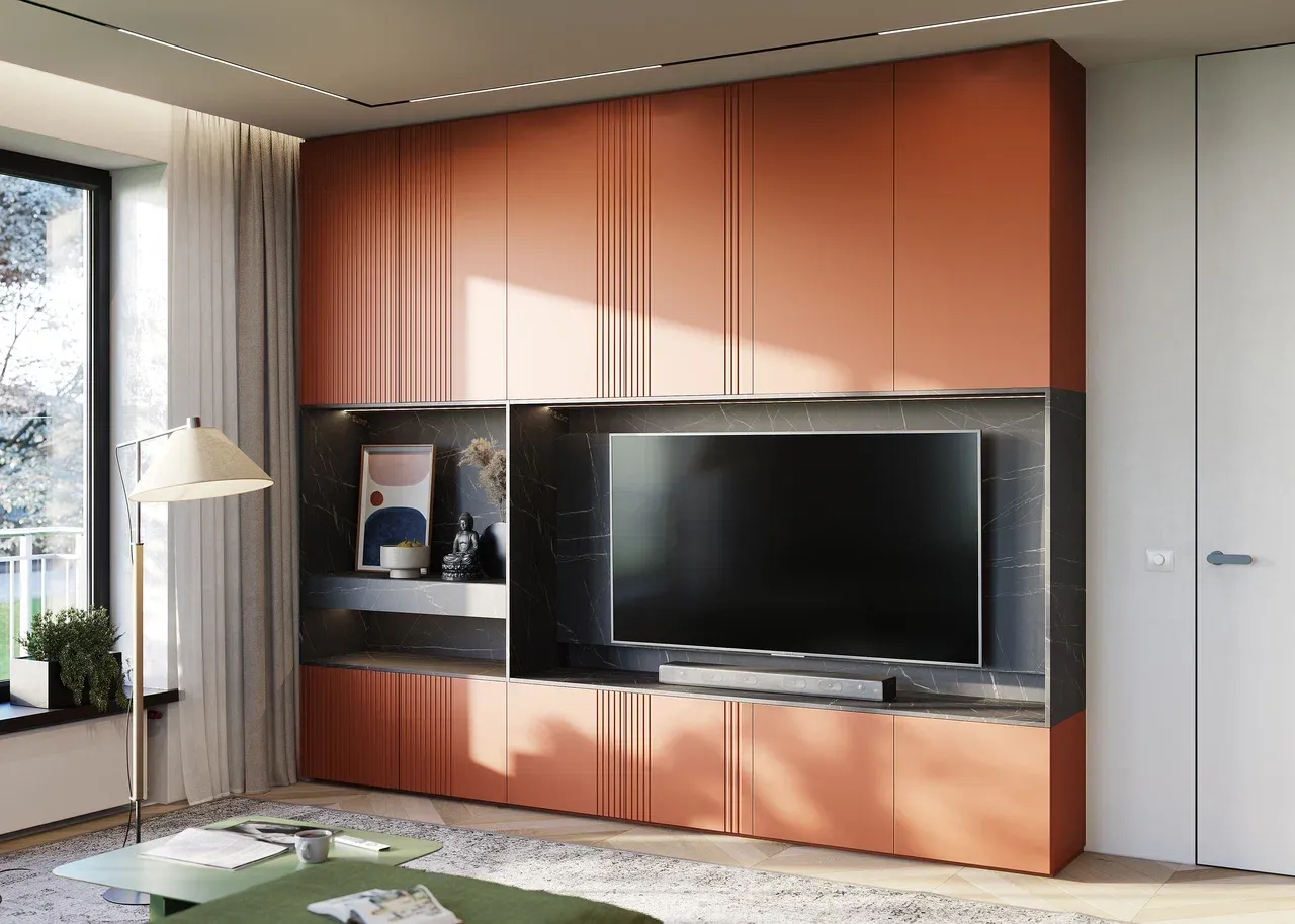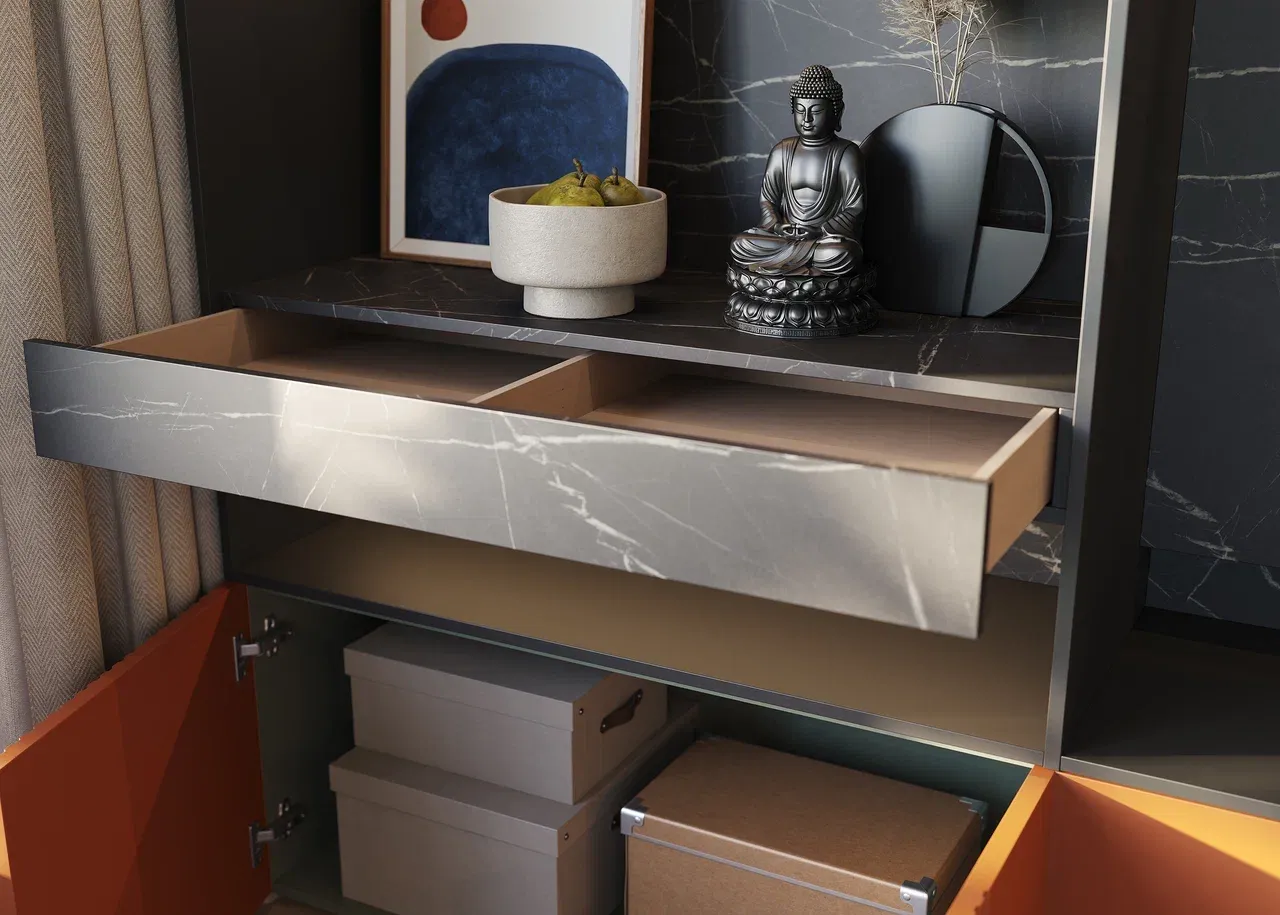 • Задние стенки и панель ящика слева от ТВ - панель витра Пьетра чёрный