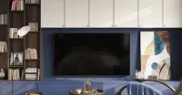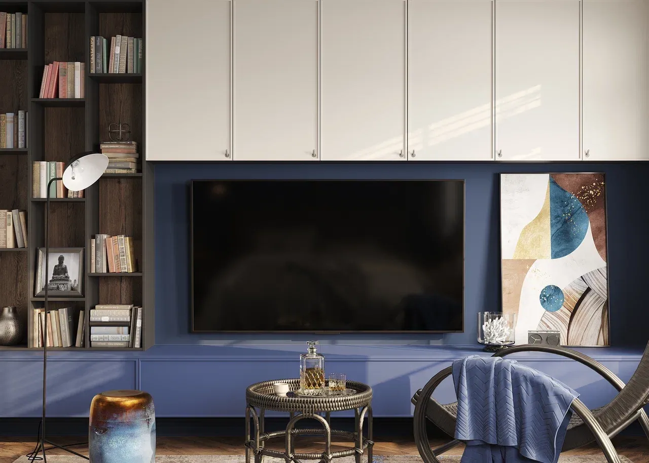 Гостиная в светлой палитре — нежное сочетание глубокого сине-фиолетового (RAL 5000) в нижних фасадах и тёплого слоновой кости (RAL 1015) в верхних. Свежий, воздушный образ с контрастом оттенков придаёт интерьеру лёгкость и стильную выразительность. Идеально для создания уютного и современного пространства.