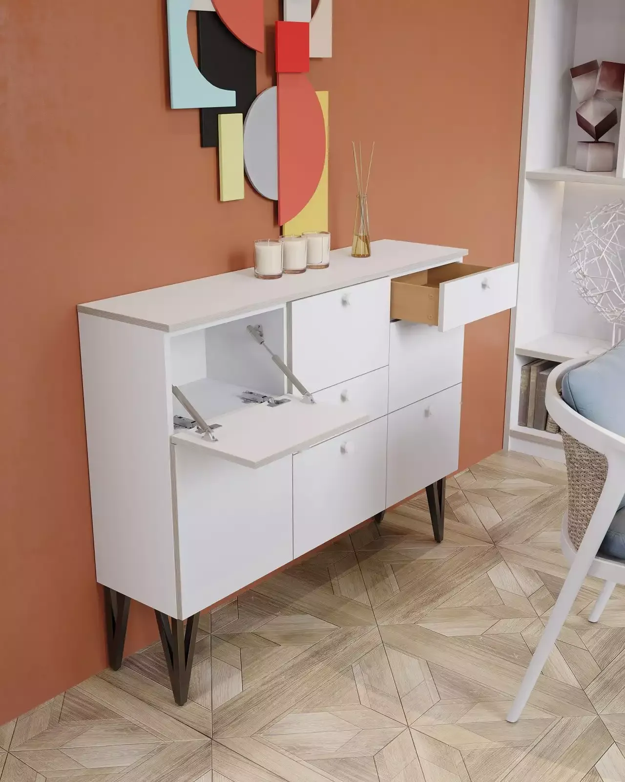 Комод на высоких ножках с откидными и выдвижными ящиками – отличное основное место хранения для огромного количества самых разных вещей.
