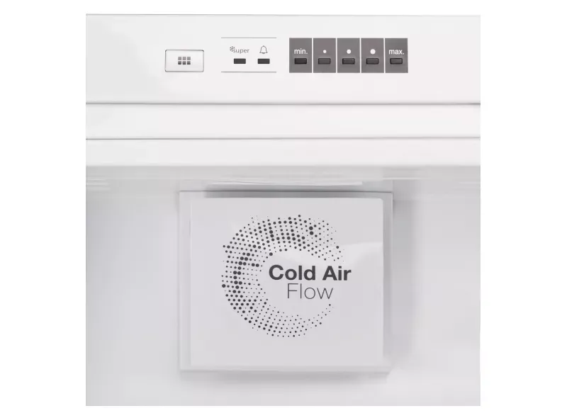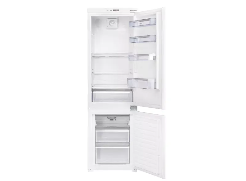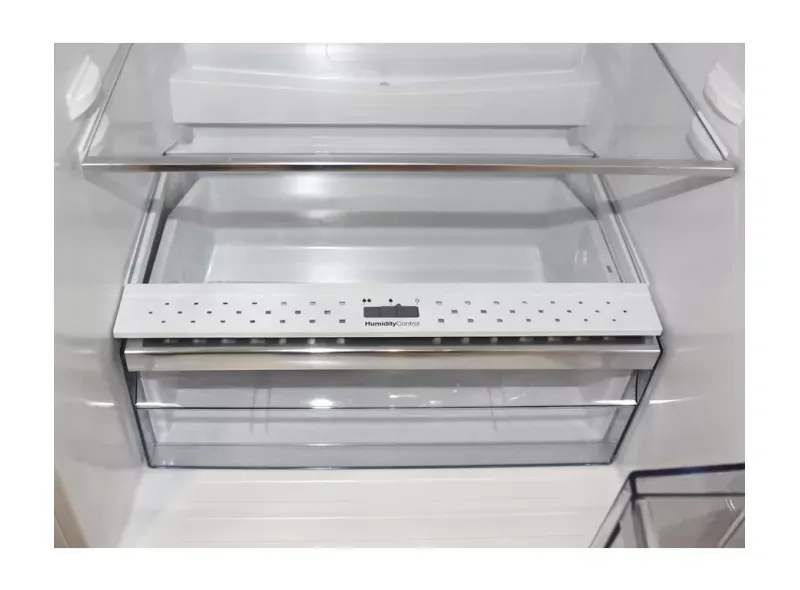 Внутри холодильной камеры расположены 4 полки из закалённого стекла, включая одну полку для бутылок, и 3 полки в дверце. В морозильной камере находятся 3 ящика для удобного хранения замороженных продуктов. Размораживание как холодильной, так и морозильной камеры происходит автоматически, что упрощает уход за холодильником.
