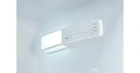 Размораживание холодильной камеры происходит автоматически, в то время как размораживание морозильной камеры происходит вручную. Дверца холодильника перевешиваемая, что позволяет удобно установить его в любом месте. Тип навески фасада — скользящий, что облегчает открывание и закрывание дверцы.