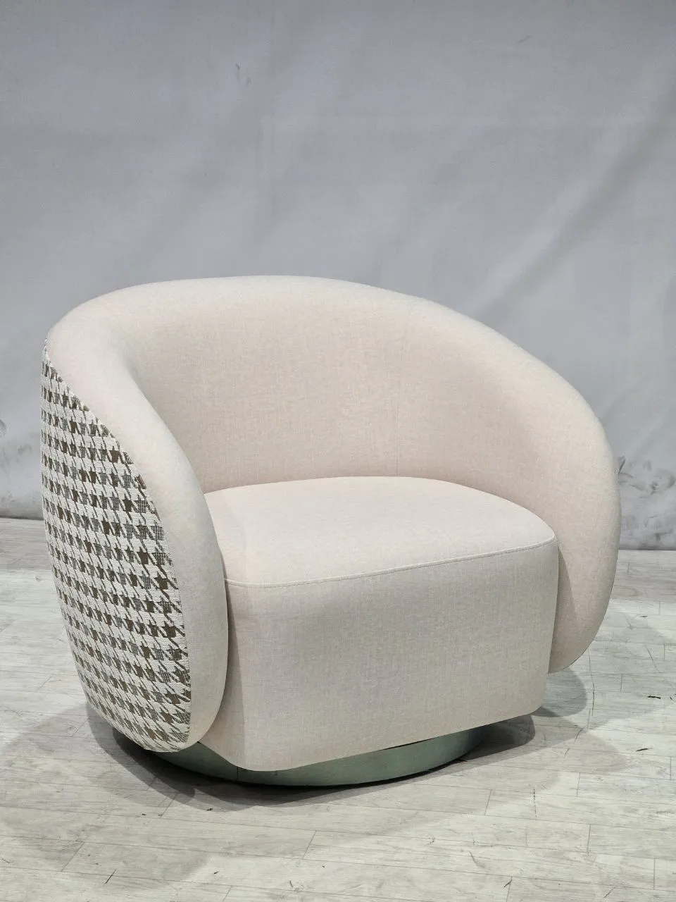 Еще одно неоценимое преимущество модели - она гармонично впишется в интерьер любого стиля. Вы можете придать особую индивидуальность креслу, выбрав разный материал обивки спинки и сиденья. На выбор 300 декоров обивочных тканей с возможностью их комбинирования. Рекомендуем использовать на спинке ткани с принтом, например, коллекции Dallas, Georgi или Monaco, для создания уникального дизайна вашей мебели. Для заказа доступна модель, оснащенная вращающимся механизмом. Габариты кресла – 750x850 мм.