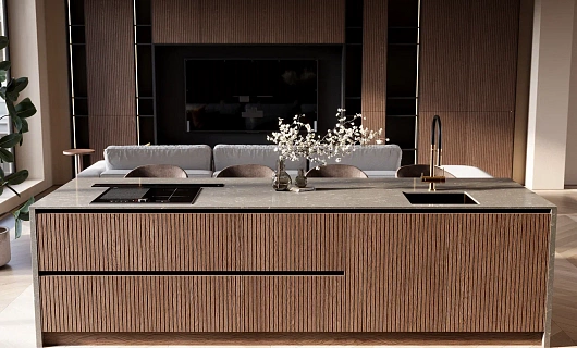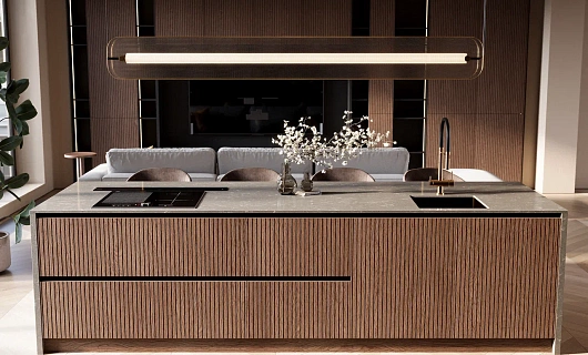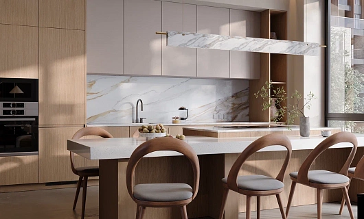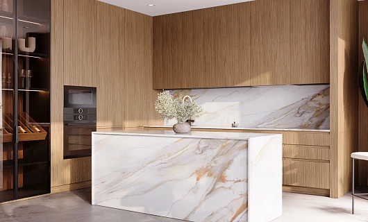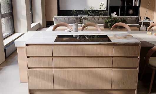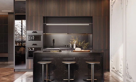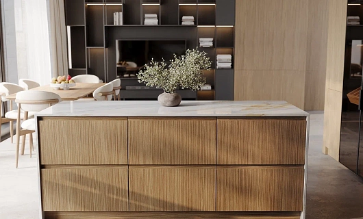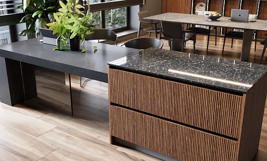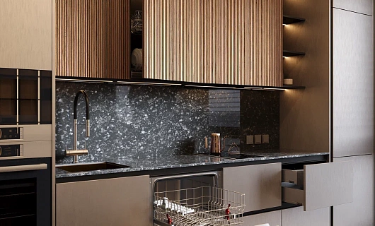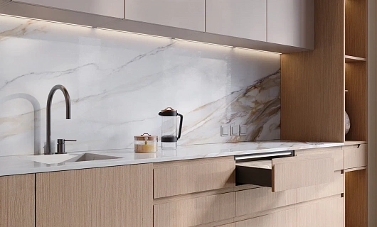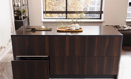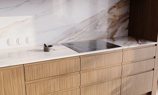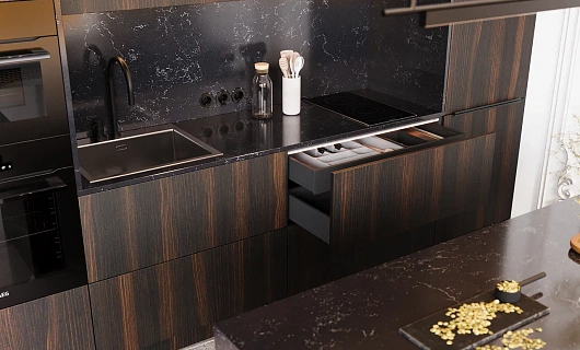 Большое внимание уделяется выбору качественной столешницы. Она должна быть водостойкой, устойчивой к механическим и термическим повреждениям. Именно поэтому в наших гарнитурах мы используем ламинированные плиты, керамику, кварцевый агломерат или искусственный камень. Столешницы из искусственного камня стоят дороже. Однако выбрав их, в процессе использования вы поймете их главные преимущества. В первую очередь, это удивительная красота камня, которая не подвластна времени. Во-вторых, это экологичность и безопасность. Сколы и механические повреждения на таких столешницах специалист устранит за считанные минуты.
