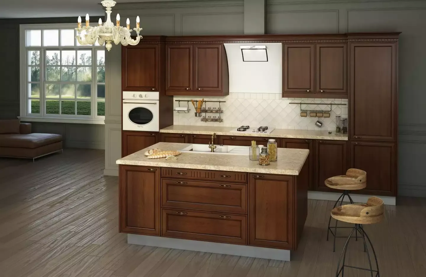Этот проект будет гармонично смотреться в большом помещении. Готовить на такой кухне одно удовольствие. В Ателье мебели Mr.Doors вы сможете заказать гарнитур своей мечты, не сомневаясь в качестве продукции.