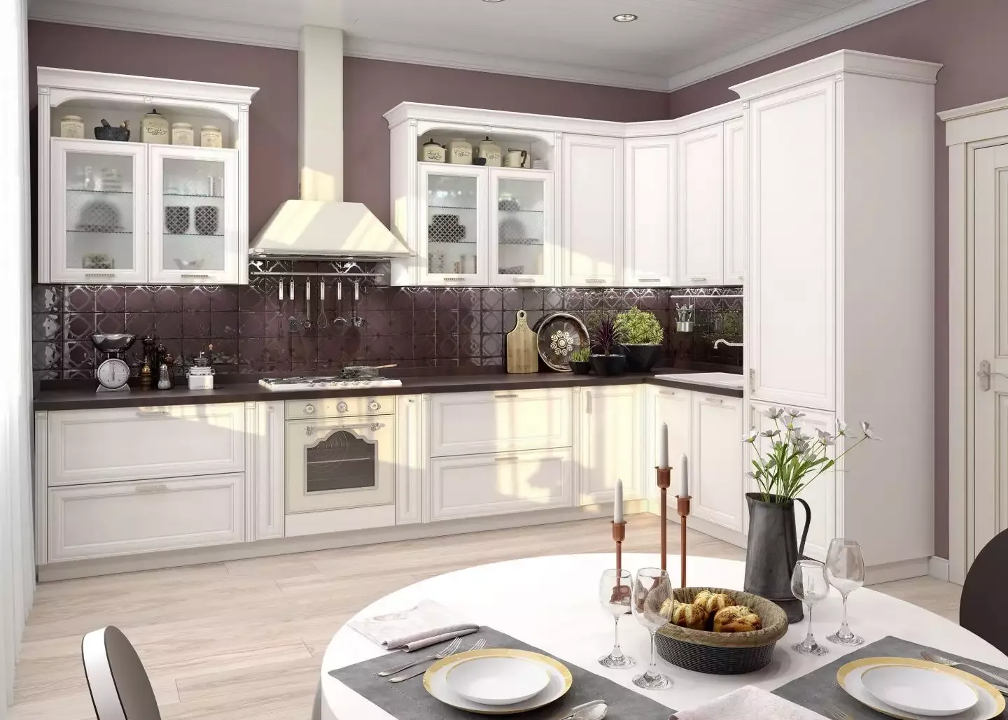Классическая белая угловая кухня. Отлично впишется в любой интерьер. За счет применения качественных материалов не только имеет безупречный внешний вид, но и неприхотлива в уборке. Гарнитур оборудован всей необходимой бытовой техникой, сделанной в едином стиле. Угловая конструкция является наиболее рациональной для удобного приготовления пищи.