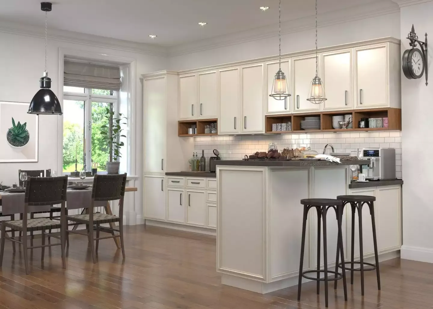 Кухня, коллекция "Сомерсет" (арт. 042): почти белый «Декапе Жемчуг» идеально сочетается с насыщенным «Вишня Брэнсон медовая»
