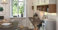 Лаконичная кухня цвета «Декапе Жемчуг». Фото интерьера в частном доме
