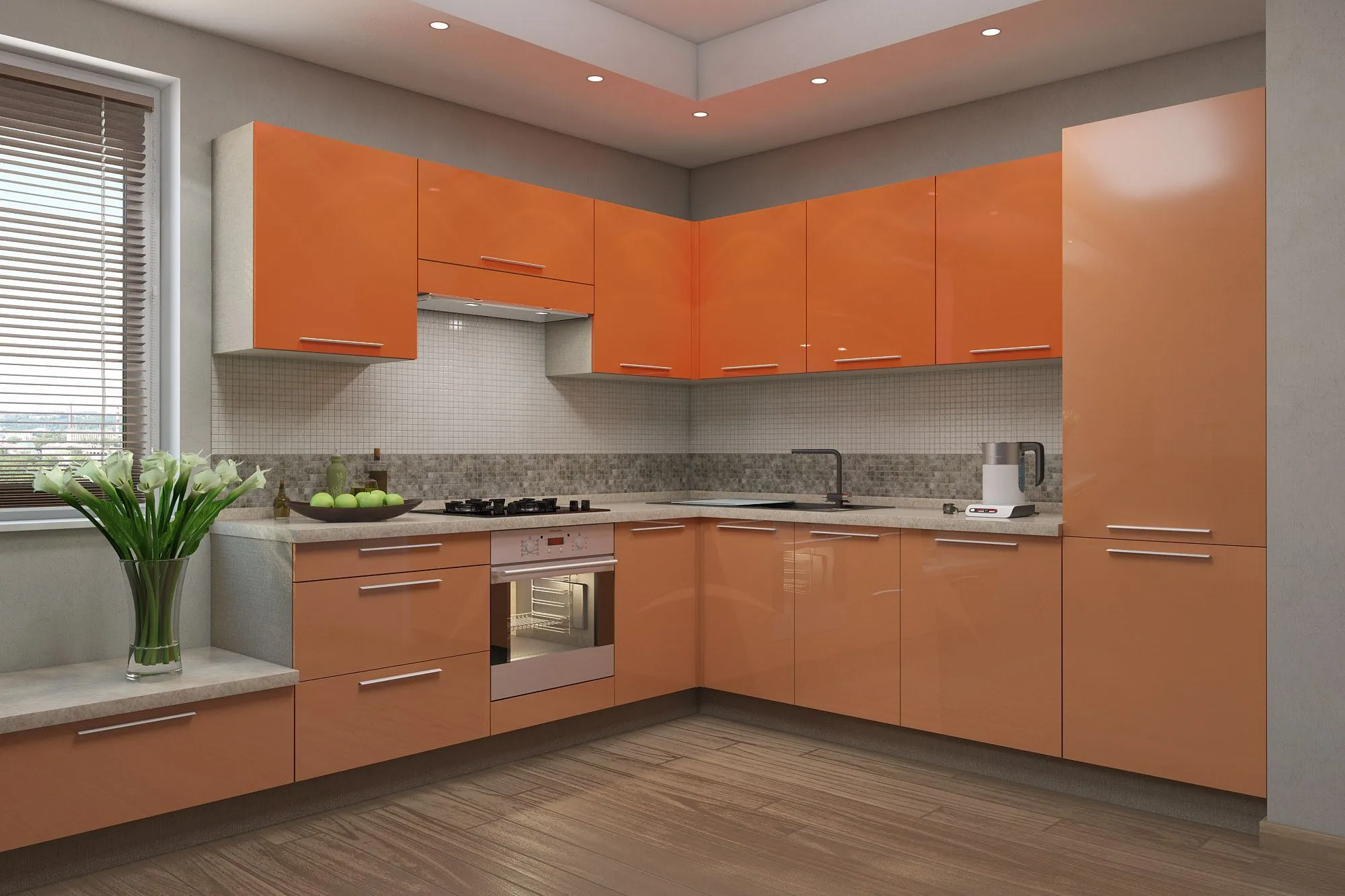 Угловые кухни имеют массу преимуществ. Они образуют большую рабочую поверхность, эргономически более удобны для приготовления пищи. Если вам понравился этот проект, мы ждем вас в Ателье мебели Mr. Doors.