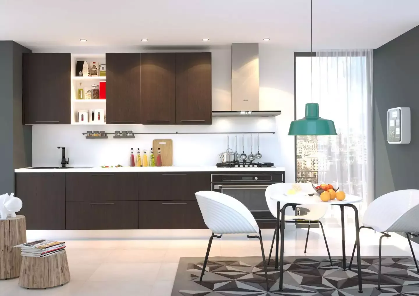 Если вам нравятся необычные цветовые решения, остановите свой выбор на этом проекте. Простое и от этого элегантное решение будет хорошо смотреться на любой кухне. Наши специалисты помогут вам выбрать любой декор, который подойдет к цвету стен.