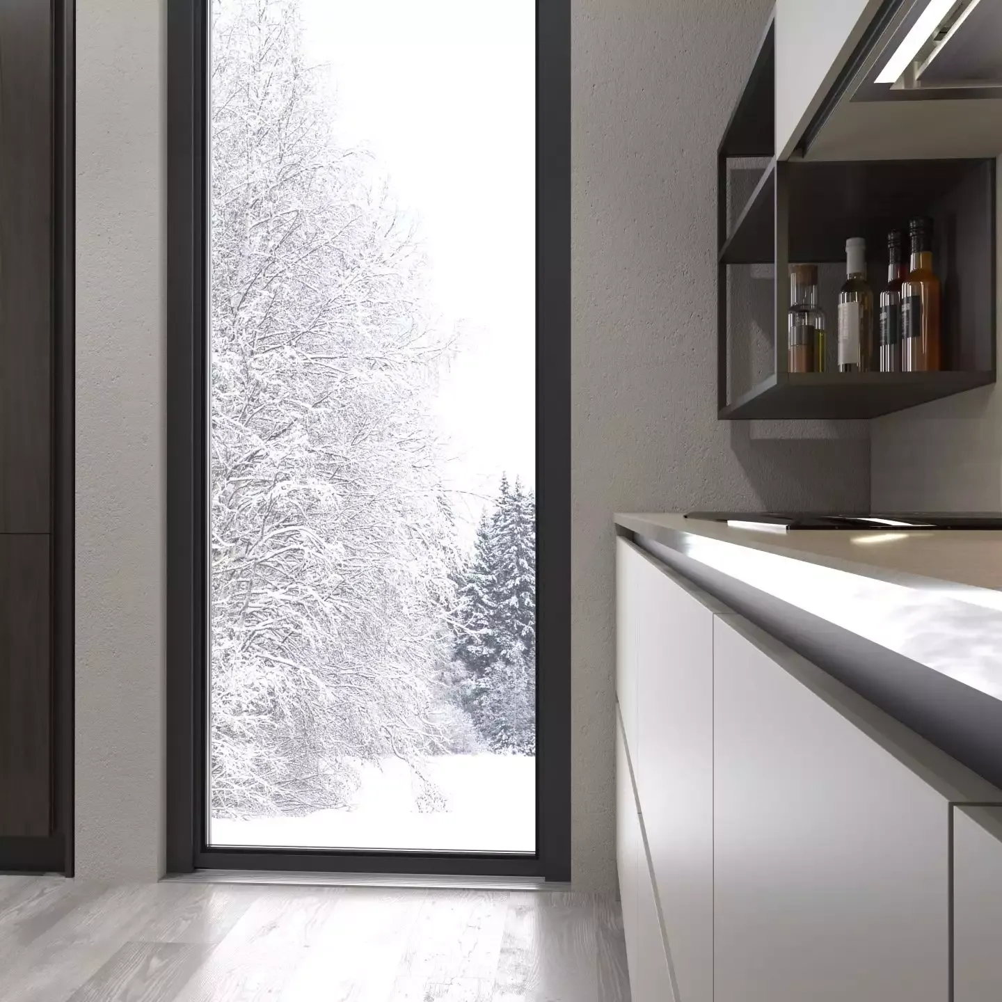 Каждый элемент кухни разрабатывается индивидуально на заказ с учетом особенностей и размеров помещения и предпочтений заказчика.