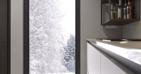 Строгие прямые линии, ровные симметрично расположенные элементы кухни создают ощущение строгости и порядка.
