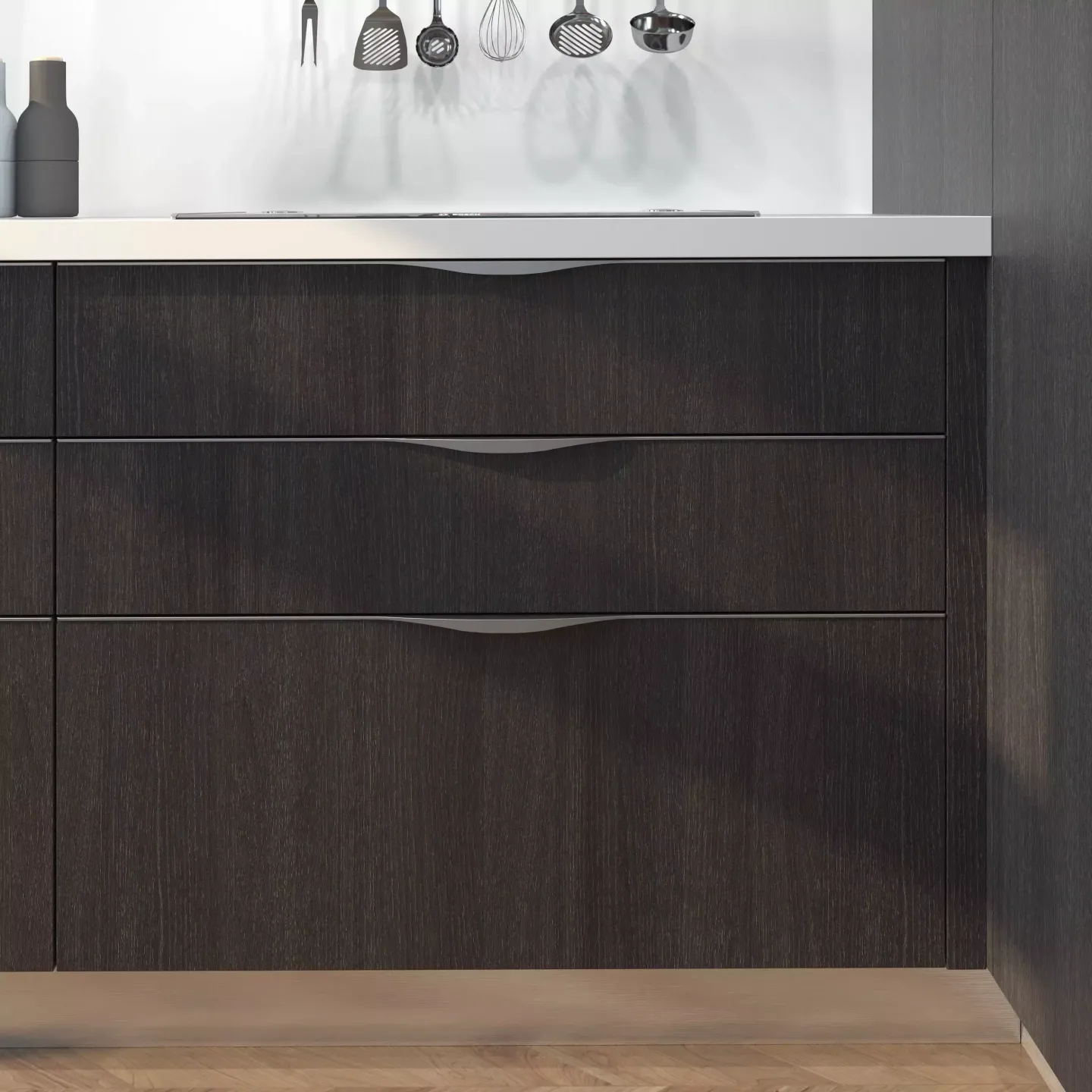 Фасады нижнего яруса с накладной торцевой ручкой Cresta.