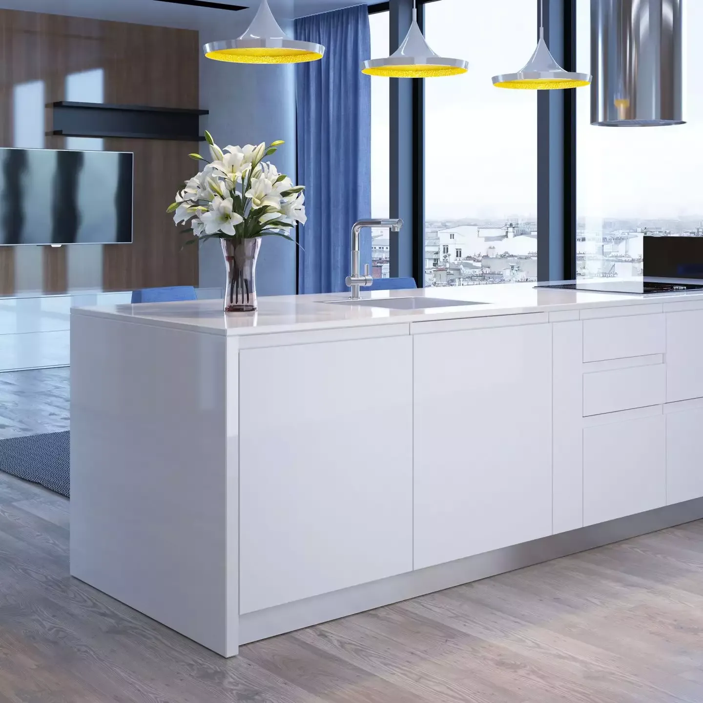 J-фасады в белой высокоглянцевой эмали.