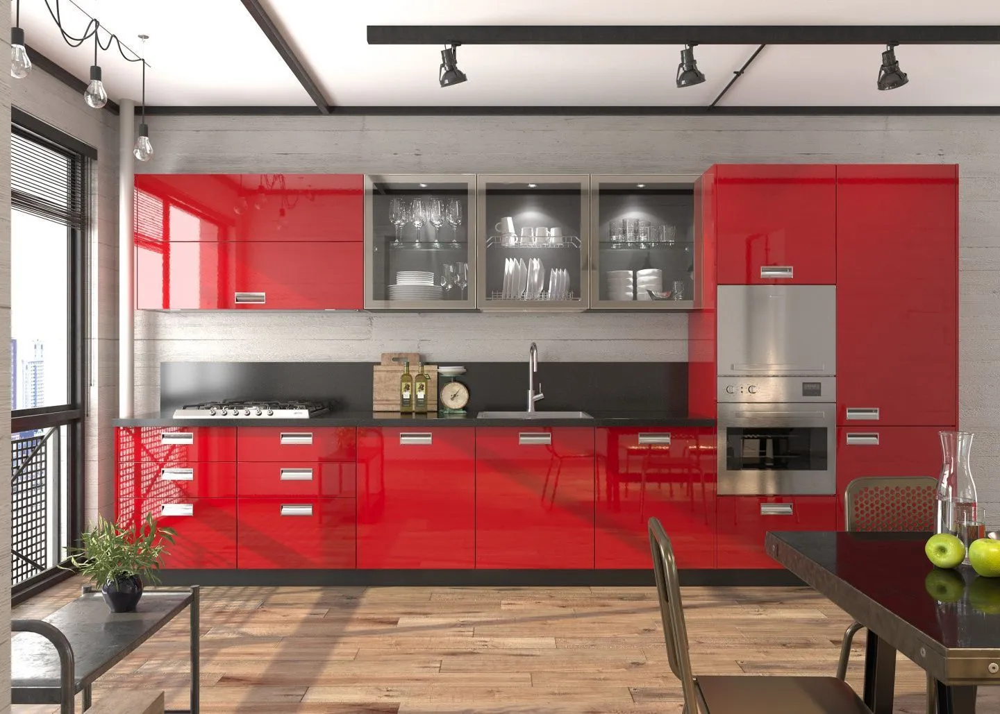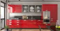 В варианте 2 декор фасадов и сайдов – МДФ в эмали красного цвета.