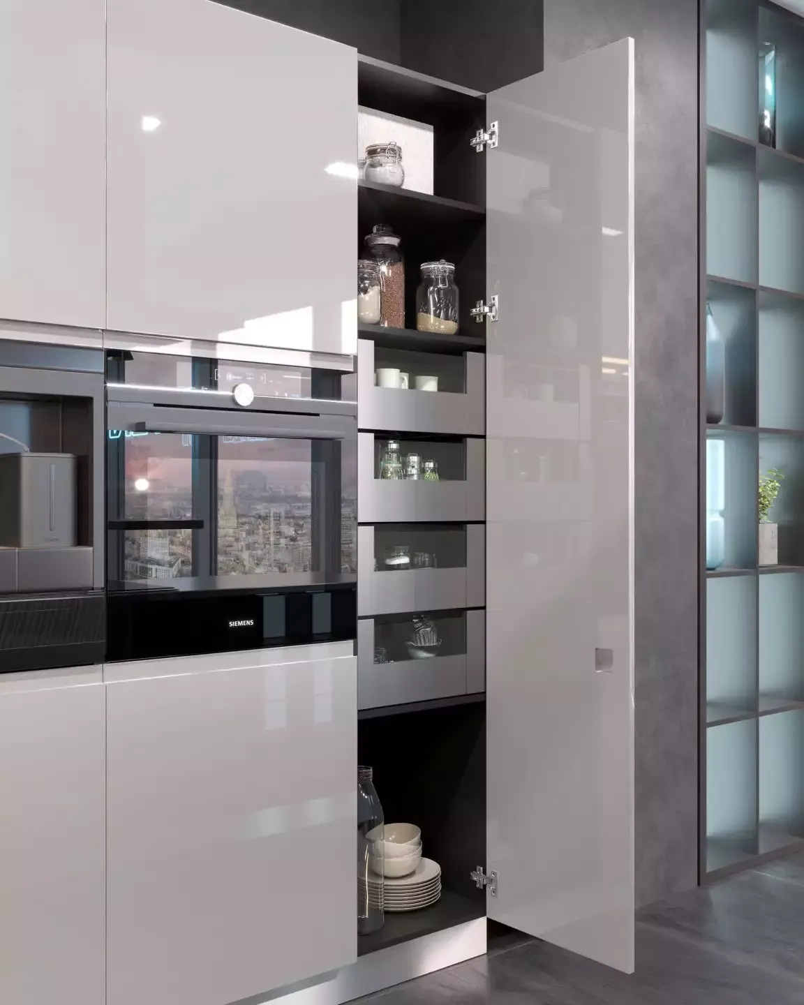 Эти нюансы делают кухню очень необычной. При этом она остается очень удобной в использовании и вместительной.