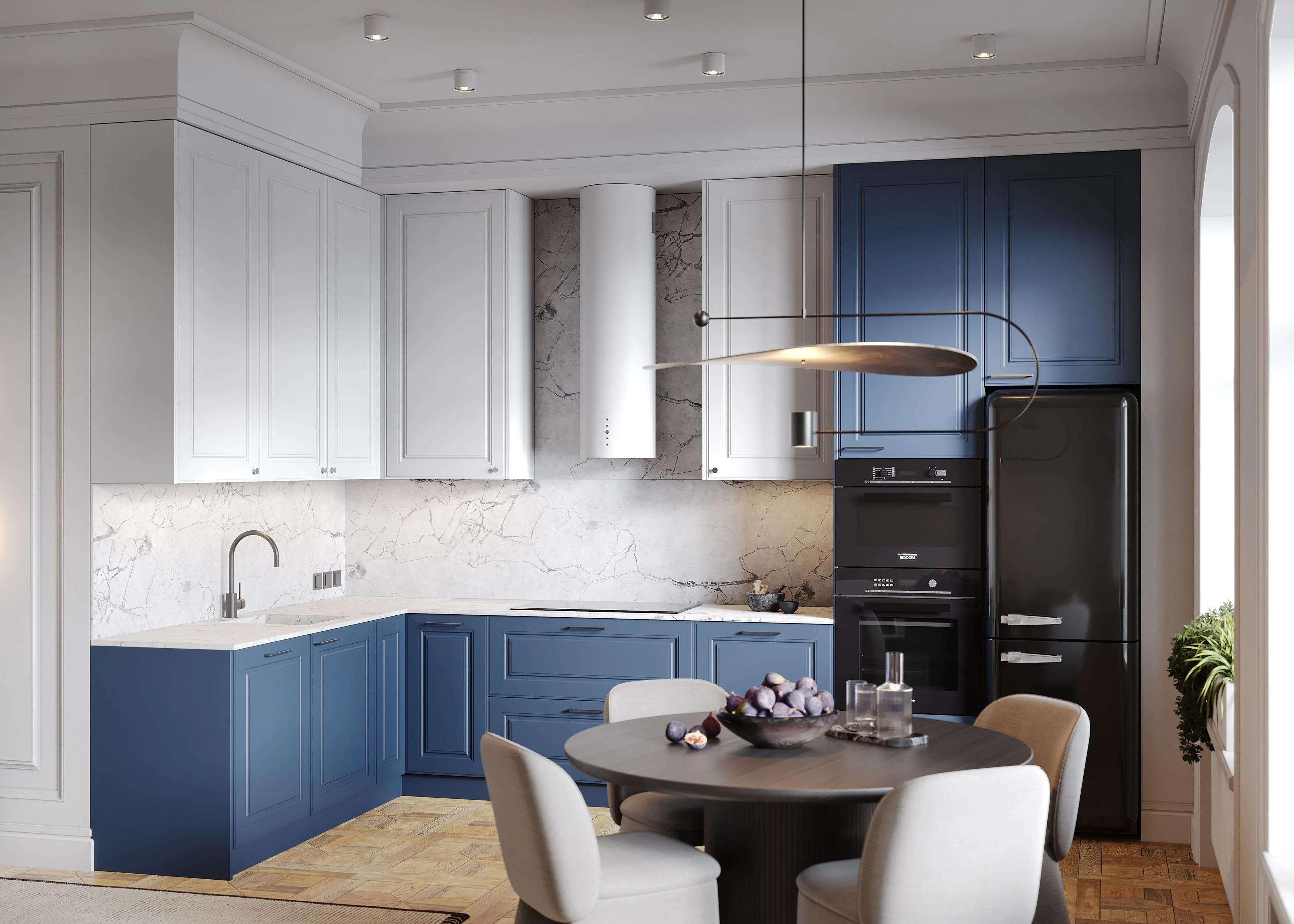 При изготовлении кухни в неоклассическом стиле на заказ важно соблюдать пропорции, чтобы сохранить характерные особенности данного стиля: