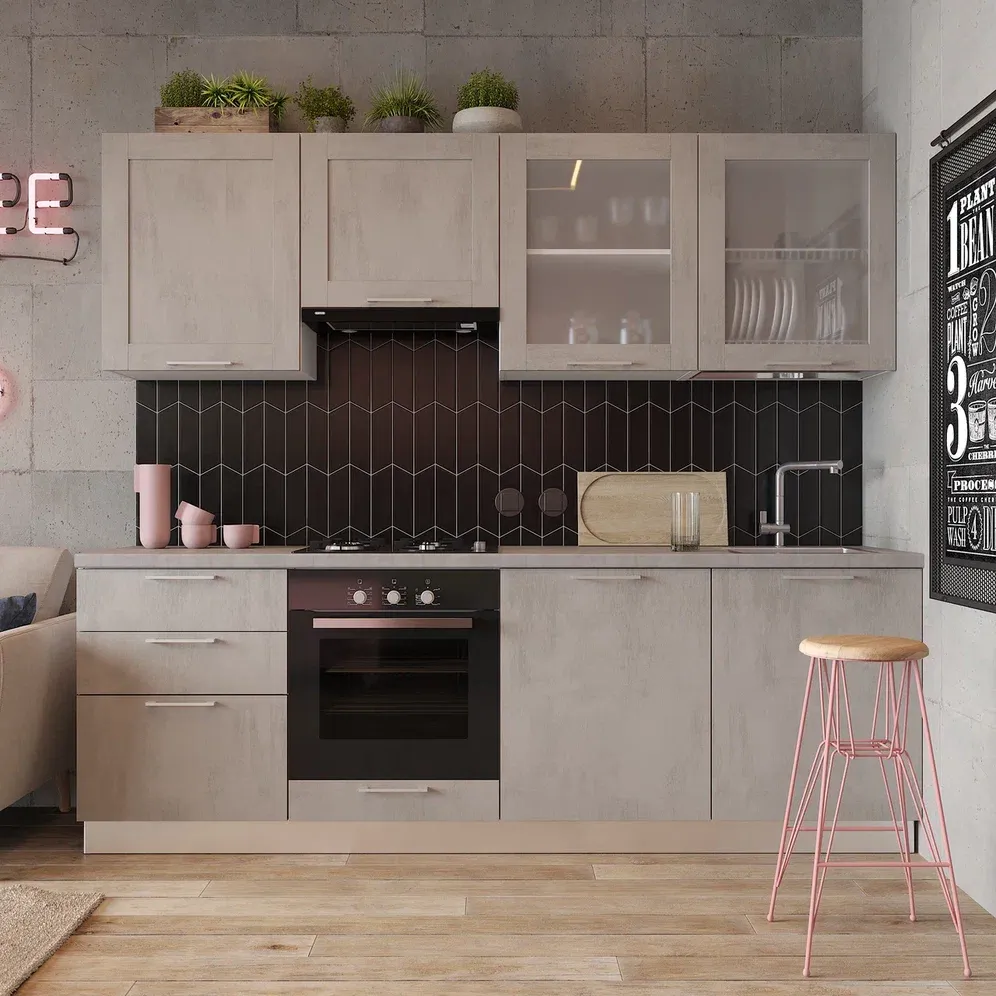 Предлагаемая вам кухня от компании-производителя современной высококачественной мебели Mr.Doors обладает не только интересным и необычным дизайном, но и высокой эргономичностью. Такой гарнитур благодаря своим компактным размерам легко впишется и в свободную планировку квартиры-студии, и в маленькую кухню хрущевки. Его цветовая гамма и внешний облик будут гармонично выглядеть в интерьере, выдержанном практически в любом современном стиле, будь то лофт, гранж, индастриал или скандинавский стиль.