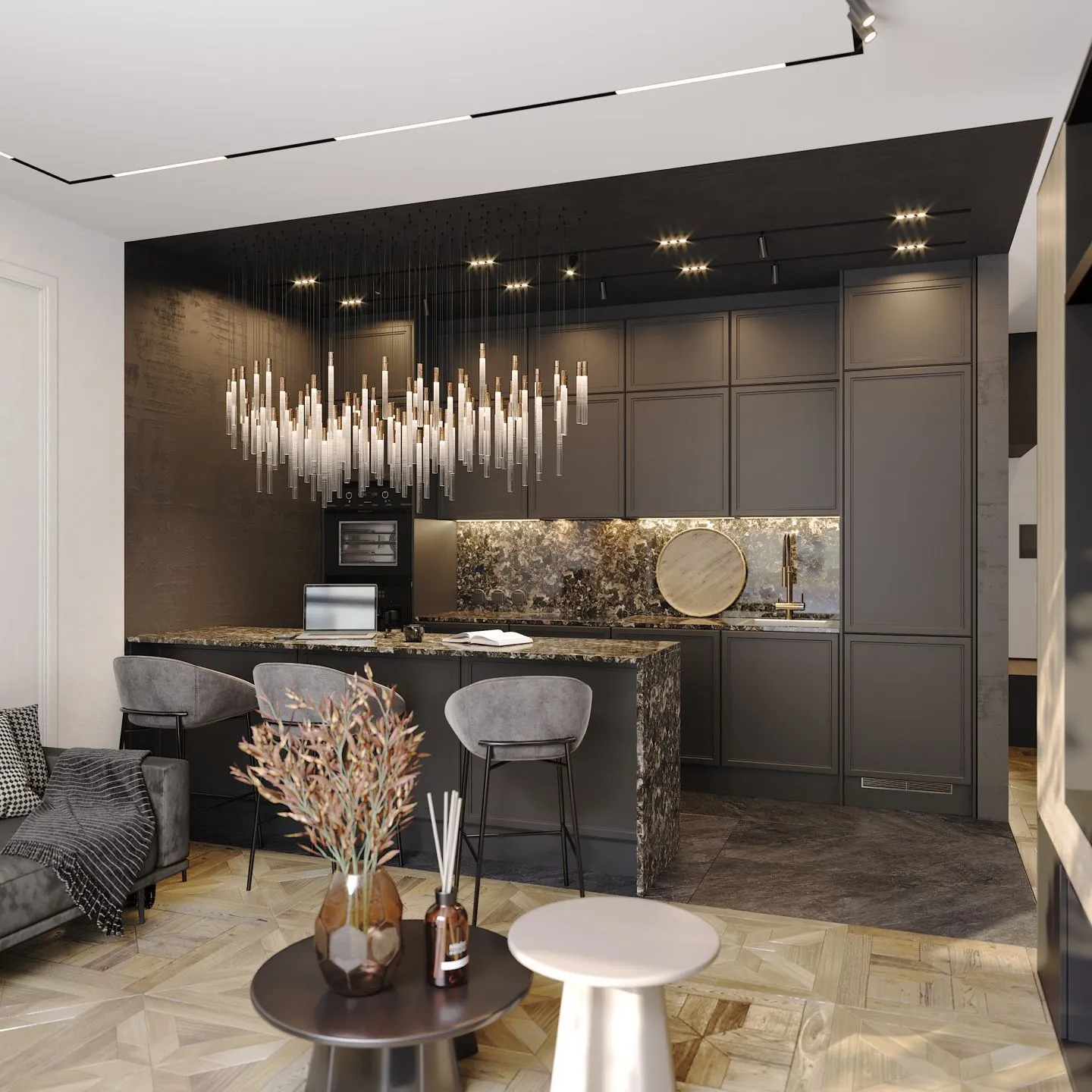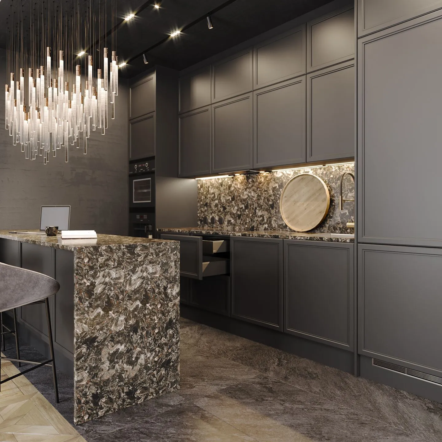 • фасады – серия “Урбан” (МДФ в эмали) в декоре “Сета Графит”;