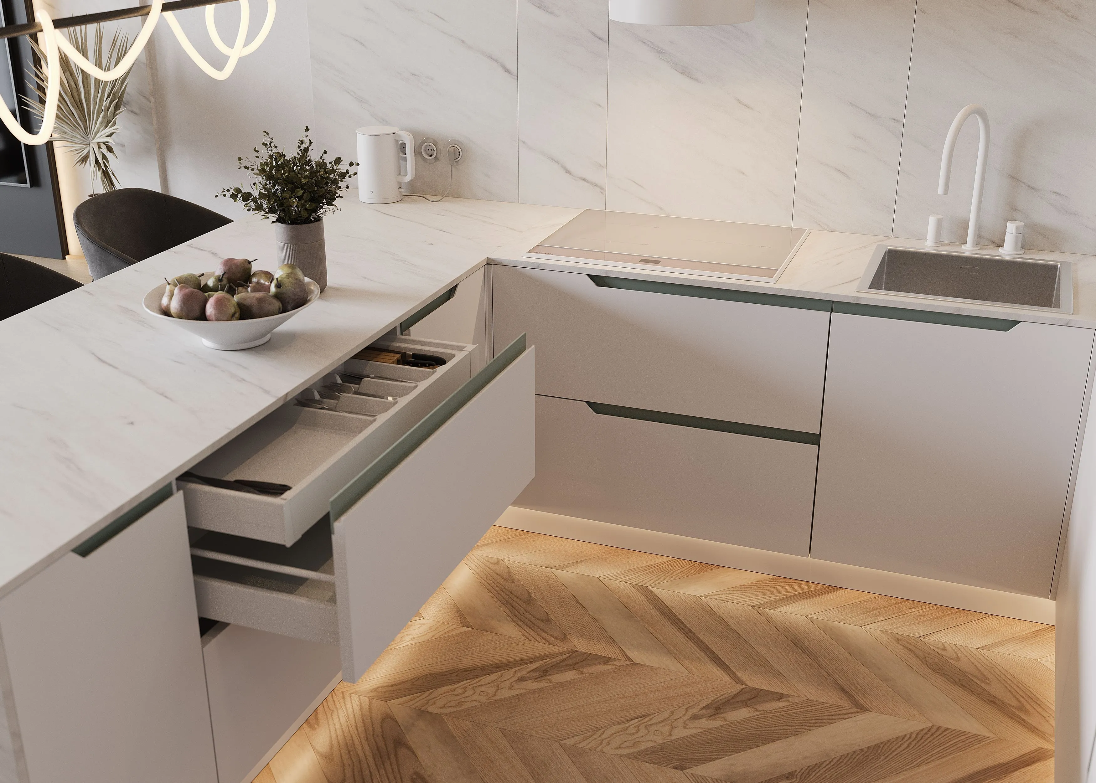 Интегрированные ручки матовая эмаль декор "Шалфей"