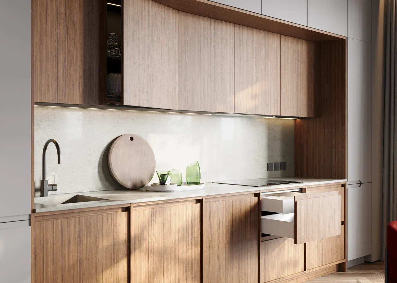 Светлые фасады и столешницы могут сохранять свой первоначальный вид дольше, чем темные, благодаря меньшему количеству видимых загрязнений.
