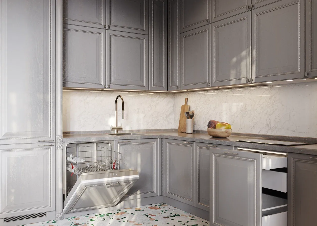 Угловая кухня в классическом стиле создает ощущение порядка и гармонии в интерьере.
