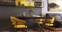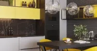 Кухня серая с желтым сделает солнечным самый пасмурный день. Такое сочетание цветов одновременно заряжает позитивом и хорошим настроением и выглядит достаточно элегантно и сдержанно. Светлые тона смотрятся изящно и гармонично, а главной изюминкой гарнитура являются открытые полки с подсветкой, создающие ощущение легкости.
