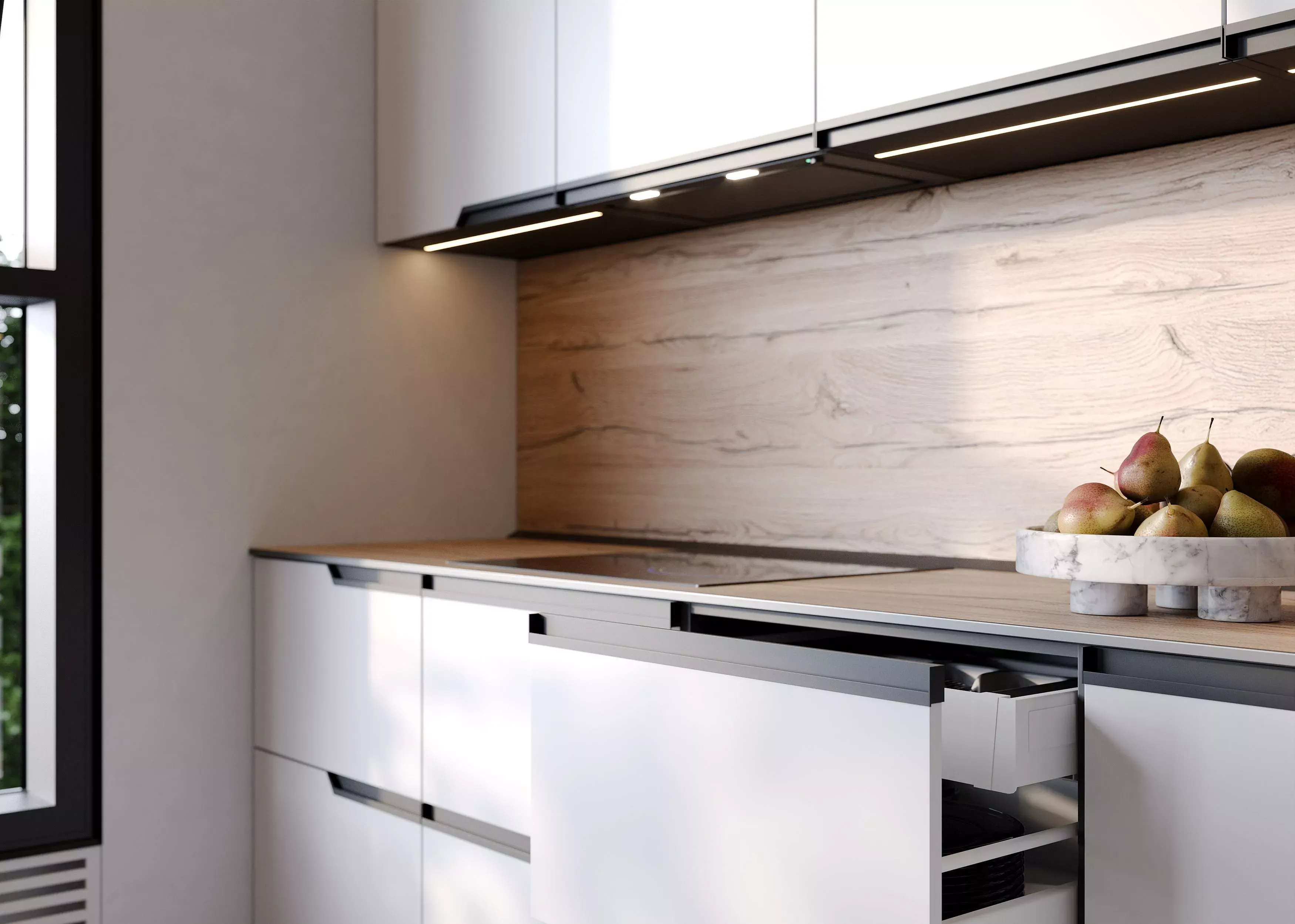 Белая кухня из коллекции Navarro идеально подойдет для интерьеров в стиле минимализм.
