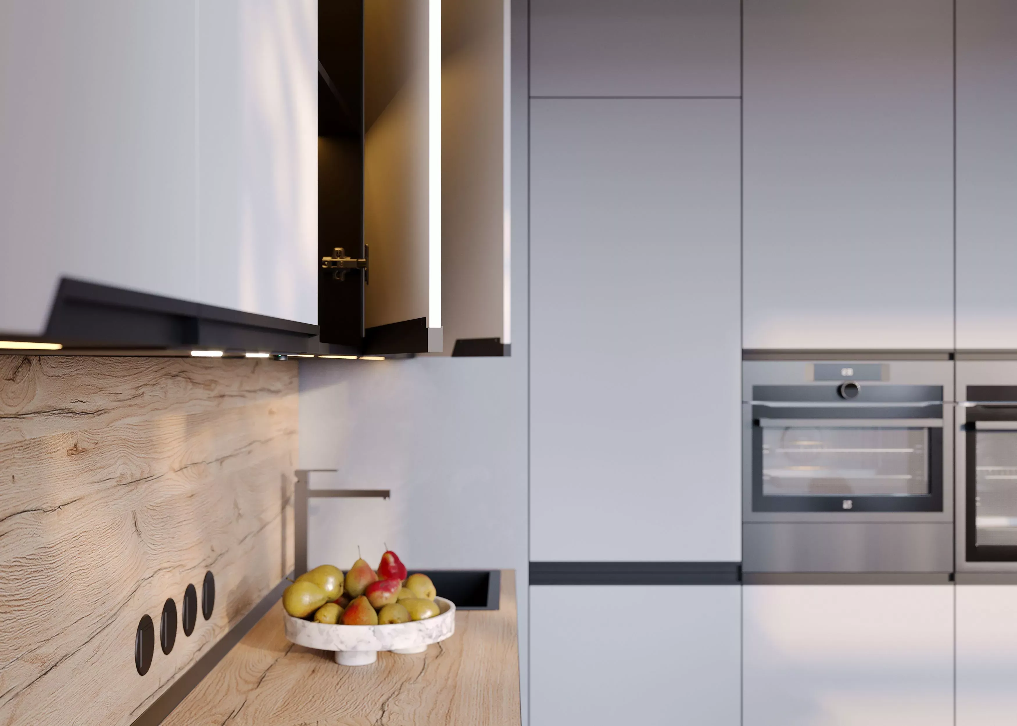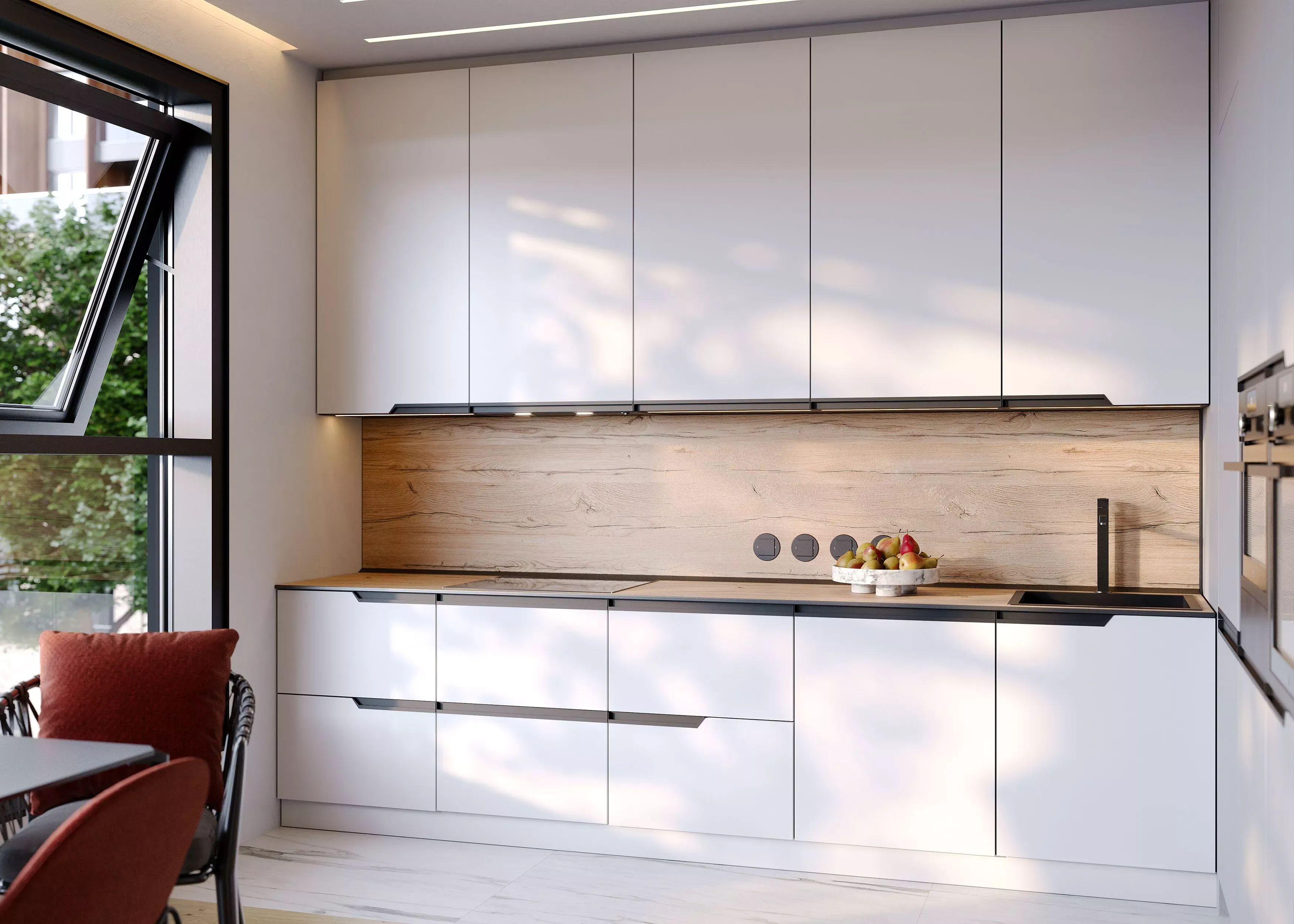 Фасады со встроенными ручками Navarro создают эстетическое единство в пространстве и сохраняют чистоту и гармонию общего вида мебели. Если вы стремитесь к современному и утонченному интерьру в вашем доме, то серия Navarro станет лучшим выбором для вас.