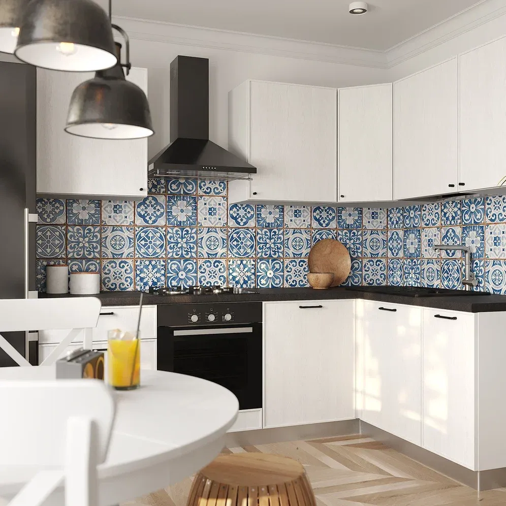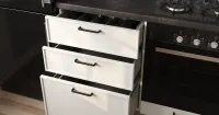 Все материалы долговечны, хорошо переносят внешние воздействия, ультрафиолетовые лучи. Фасады из МДФ представляют собой спрессованную под воздействием температуры стружку из массива и склеенные между собой соединениями парафина. МДФ абсолютно безопасен, не выделяет во внешнюю среду вредных веществ. За фасадами легко ухаживать, достаточно протереть их при загрязнении мягкой фланелевой тканью или бумажным полотенцем. На столешнице удобно заниматься приготовлением пищи для всей семьи.
