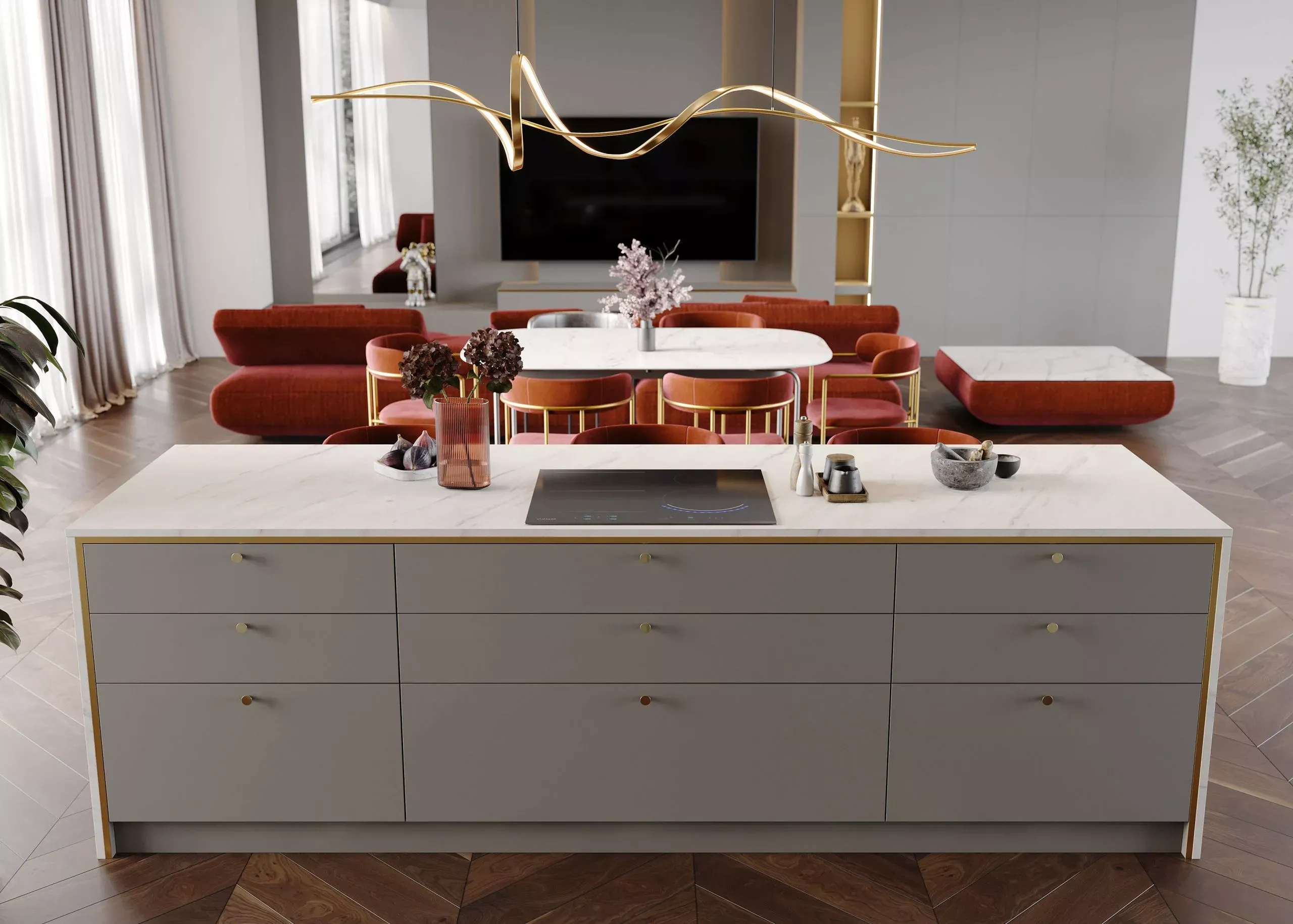 Кухня коллекции Supramat дополнена островом, который служит не только функциональной зоной для приготовления пищи, но и местом для проведения времени с семьей и друзьями. Эта модель станет прекрасным решением для создания уютной атмосферы в вашем доме.