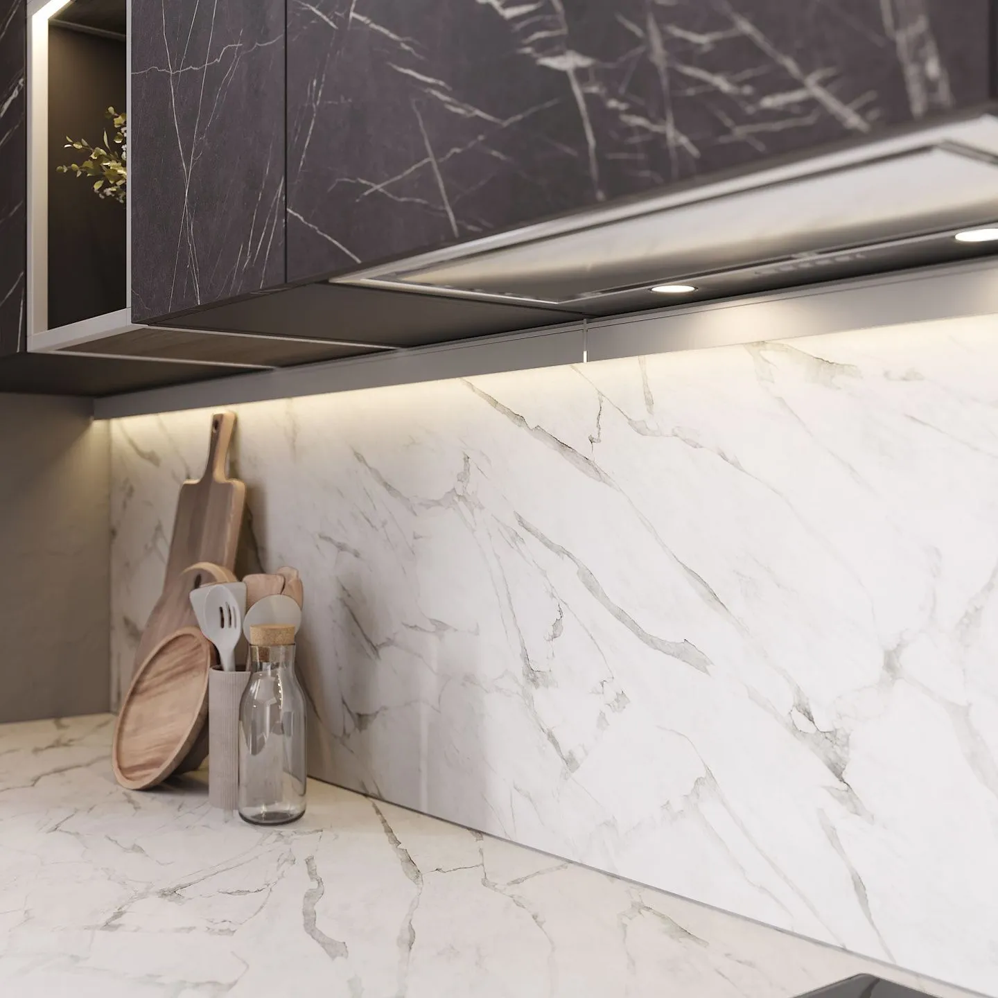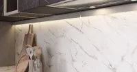 • Кварцевого камня Quarzelan в дизайне “Мрамор Леонтия” для столешницы.