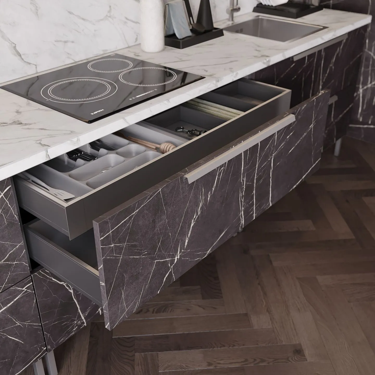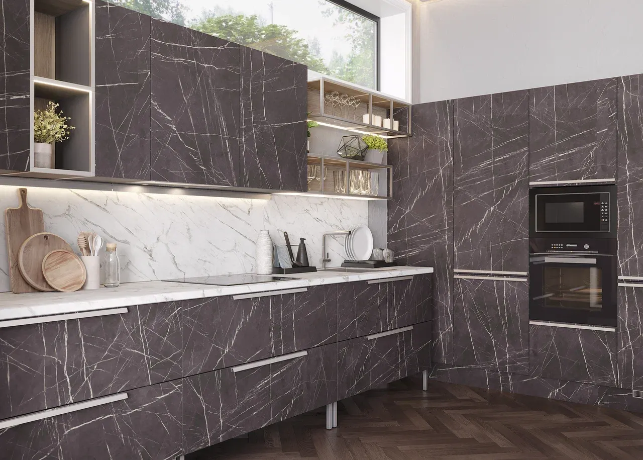 • МДФ в лаке “Пьетра Черный” для фасадов серии Витра.