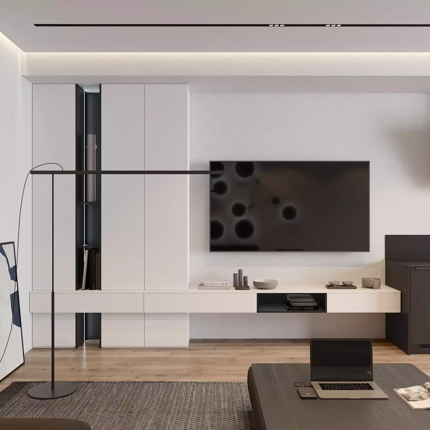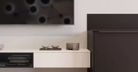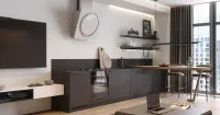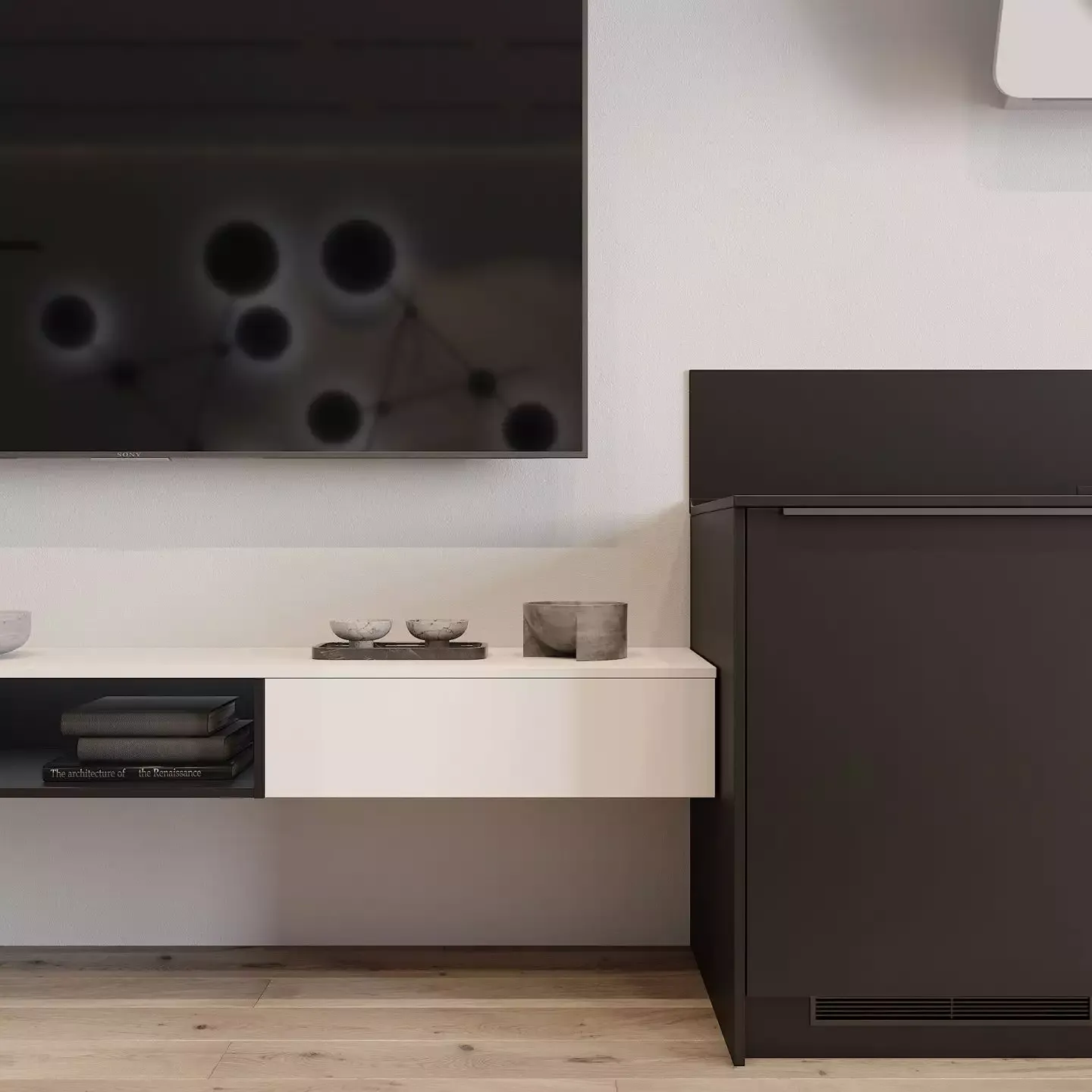 • ТВ-юнит, состоящий из распашного шкафа с открытым модулем и подвесного бокса.