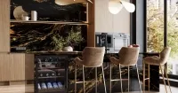 Кухня с островом со столешницей из гранита — это гармония элегантности и функциональности. Солидная гранитная столешница придает интерьеру благородный блеск и долговечность, а остров становится стильным центром притяжения. Идеальное сочетание практичности и изысканности для тех, кто ценит натуральные материалы и безупречный вкус