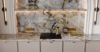 Кварцит Golden Island 20 мм — природная роскошь с теплыми золотистыми прожилками. Монументальная прочность камня и изысканная игра оттенков создают эффект солнечного сияния в интерьере. Вечная элегантность в каждом срезе.