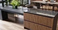 Столешница обеденной зоны из искусственного акрилового камня Grantex в декоре Q312 Pietra Absorb — это воплощение элегантности и практичности.