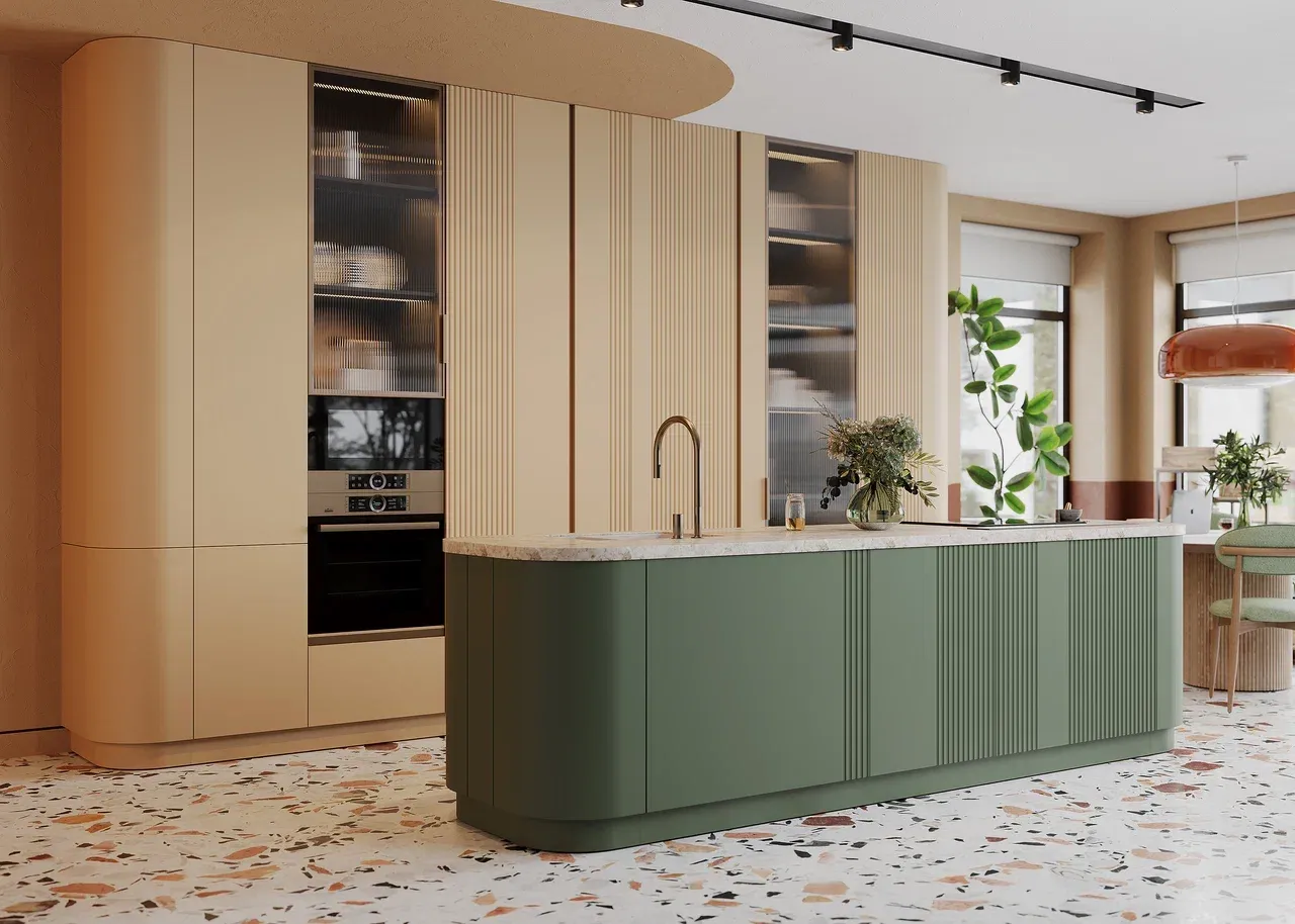 Фасады оснащены профилем Gola в покраске NCS в тон фасадов.